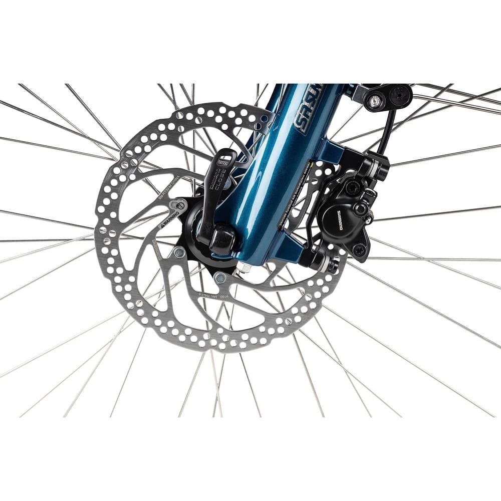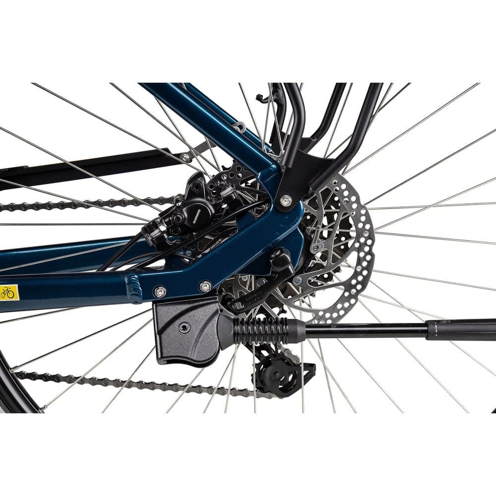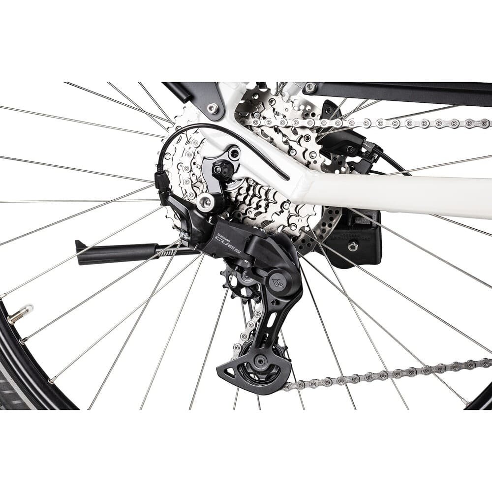 Um Energie zu sparen und angepasst zu pedalieren, ist eine Cues Kettenschaltung mit 9 wählbaren Gangstufen verbaut. Ebenso wie diese, stammt die hydraulische Scheibenbremsanlage auch vom Marktführer Shimano. Bei der kraftvollen Motorunterstützung und bei einem Einsatz in hügeligeren Gegenden, ist diese standfeste Bremse eine gute Wahl.