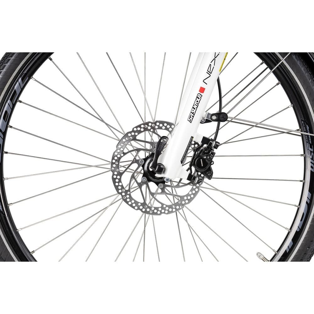 Aber auch der Komfort kommt bei diesem Trekking-E-Bike der 2R Manufaktur nicht zu kurz: Die 75 mm SR Suntour Federgabel federt zusammen mit der Parallelogramm Sattelstütze angenehm auf unebenen Etappen. Auch der elegante, verstellbare Satori Lenkervorbau, die ergonomischen Bar-End Griffe und die pannensichere Schwalbe Marathon Bereifung, lassen dich auch lange Touren mit dem ELC 9 Trekkingpedelec angenehm erleben.