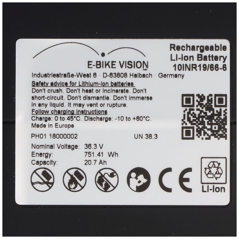 Technische Daten – „745Wh E-Bike Akku Yamaha PW-X, PW-X2 und PW Series SE, ST, TE, 36 Volt 20,7 Ah Unterrohr, Rahmen“