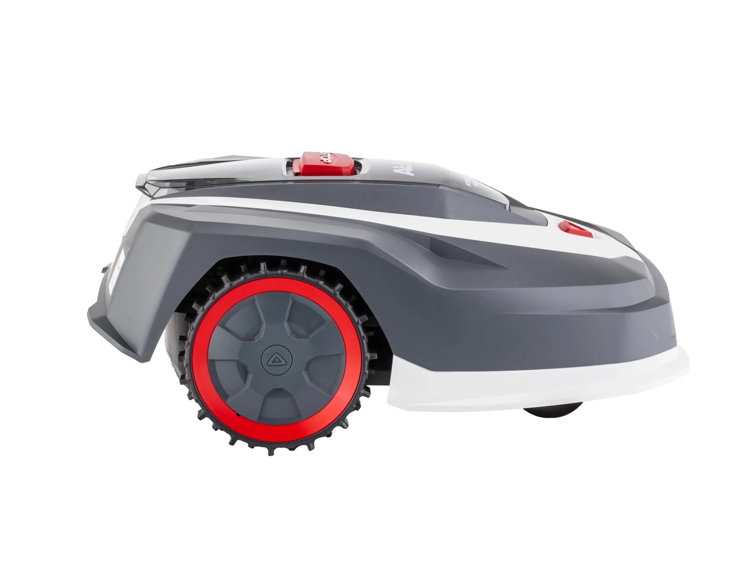Das Design ist funktional und zugleich modern gehalten. Klare Linien, kompakte Abmessungen und eine ausgewogene Gewichtsverteilung ermöglichen eine sichere Fahrt auch auf unebenem Gelände. Durch die niedrige Bauhöhe kann der Mähroboter problemlos unter Gartenmöbeln oder Sträuchern arbeiten.