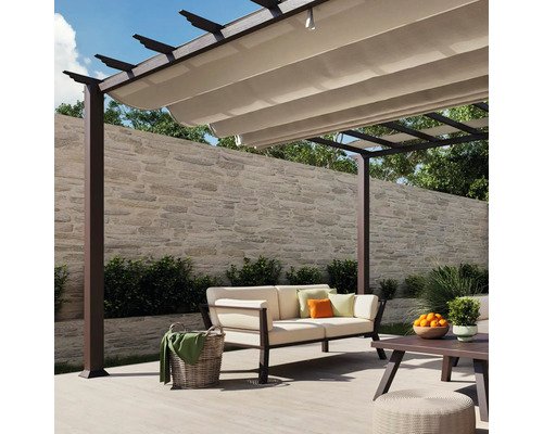 Aluminium Pergola Pavillon Florenz 11×16 inkl. verstellbarem Sonnensegel 350 x 505 cm Cocoa dunkelbraun