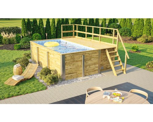 Aufstellpool Holzpool Set Weka 595 rechteckig 490x315x201 cm inkl.