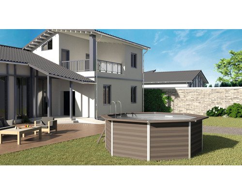 Aufstellpool WPC Pool Set Gre rund 410×124 cm inkl. schutzvlies grau