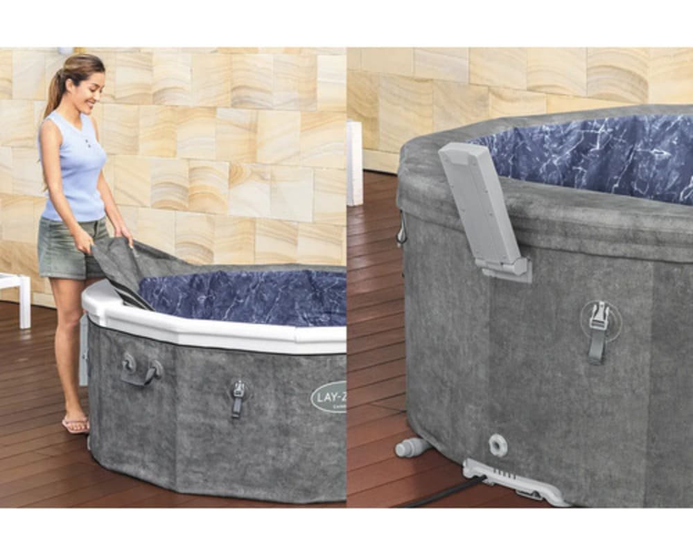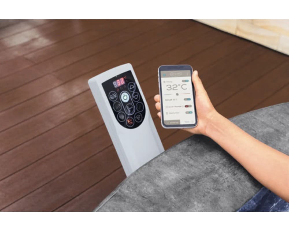 Der Lay‑Z‑Spa Carrara ist mit dem beliebten AirJet Massage‑System ausgestattet, das durch zahlreiche Luftdüsen sanfte Luftblasen ins Wasser leitet. Diese erzeugen eine angenehme Massagewirkung, die Verspannungen löst und deine Muskeln entspannt. Die Multifunktionspumpe vereint die Heiz‑, Filter‑ und Massagefunktion in einem Gerät und lässt sich intuitiv über ein benutzerfreundliches Bedienfeld steuern.