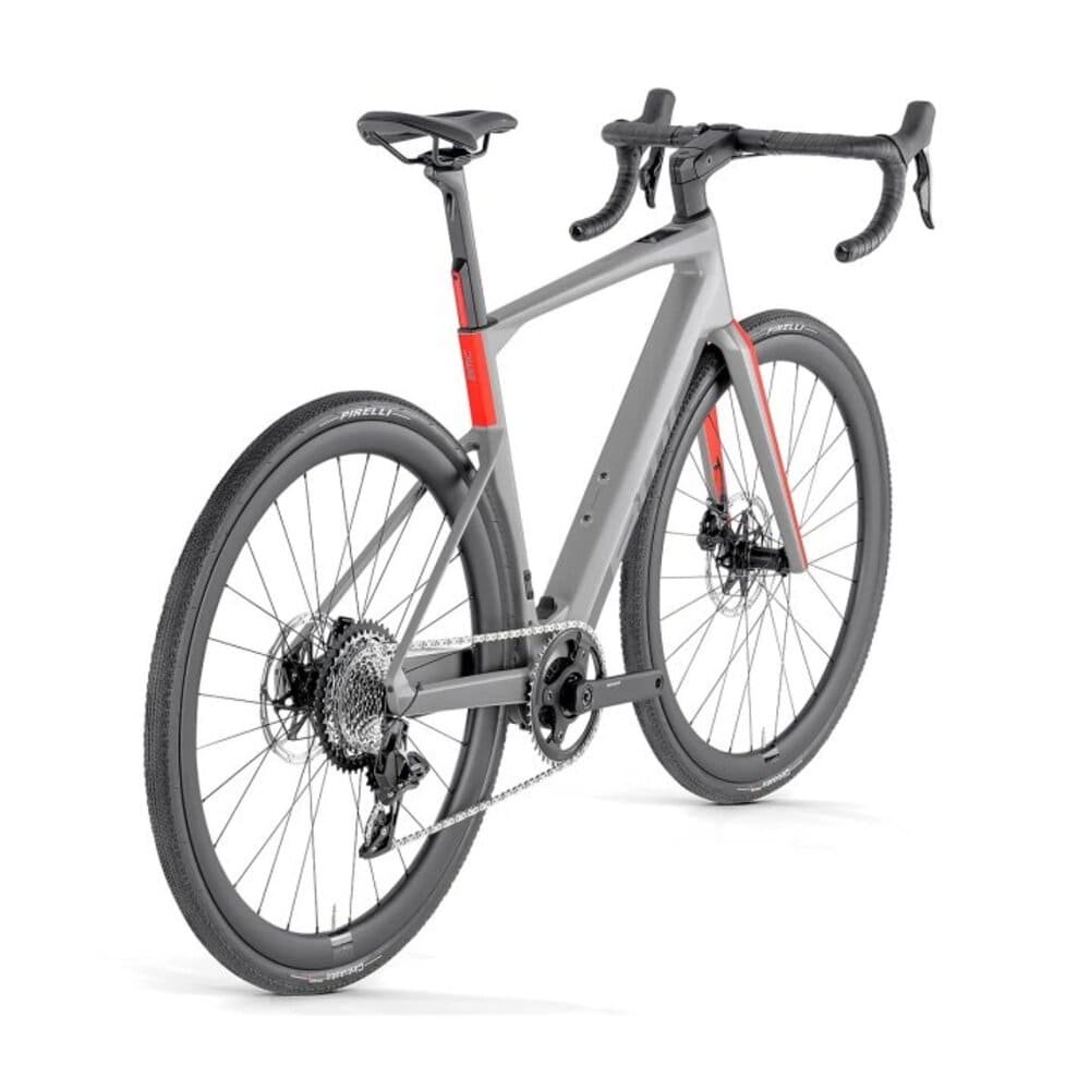 Produktname: BMC ROADMACHINE 01 AMP X ONE – Gravel E-Rennrad – 2024 – rhino grey / neon red