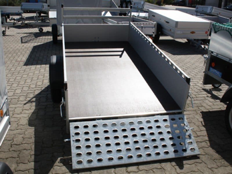 Die Bordwände lassen sich leicht öffnen oder abnehmen, was den Anhänger besonders flexibel macht.
