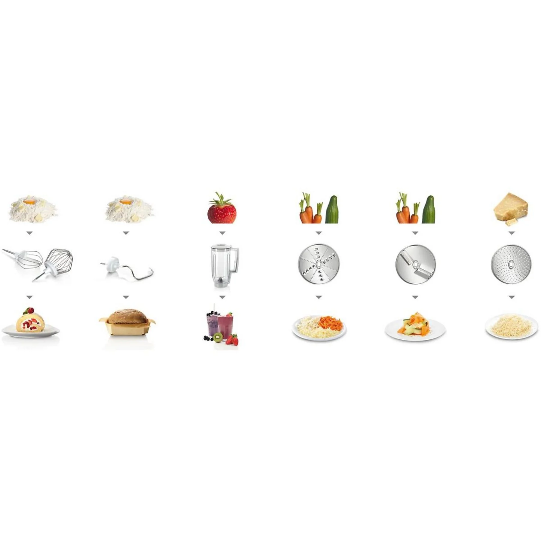 Die BOSCH MUM 58720 Küchenmaschine ermöglicht es, unterschiedliche Rezepte ohne Anpassung der Technik umzusetzen.
