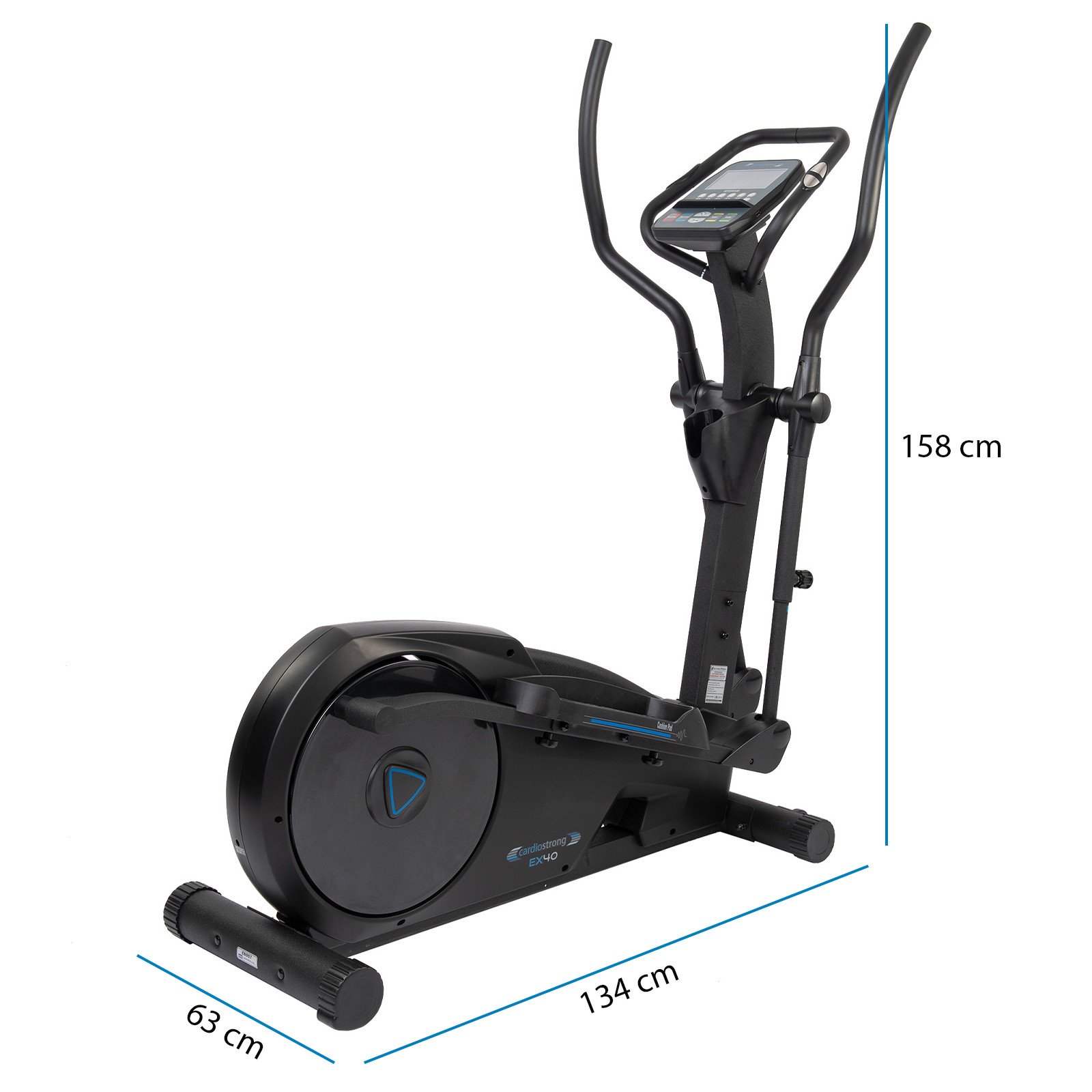 • Aufstellmaße – cardiostrong Crosstrainer EX40: (L) 134 cm x (B) 63 cm x (H) 158 cm