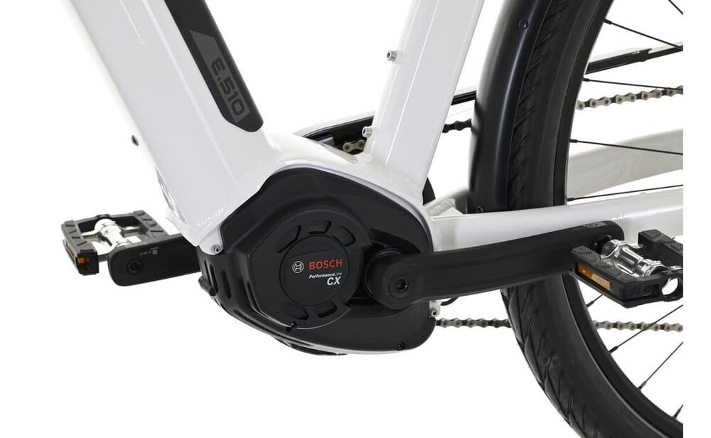Der Antrieb vom Carver Route E.510 ist ein wahres Powerpaket und überzeugt in jeder Hinsicht. Der Bosch Mittelmotor Performance Line CX Gen4 mit 250 Watt ist das Herzstück des E-Trekkingrads und sorgt für eine starke Performance mit einem Drehmoment von 85 Nm. Dank des leistungsstarken Bosch-Motors meisterst du mühelos auch ausgiebigere Strecken und erreichst dein Ziel mit Leichtigkeit. Die Akkukapazität von 500 Wh garantiert dir eine effiziente Nutzung und der kräftige Antrieb des Motors lässt dich jede Steigung spielend leicht bewältigen.