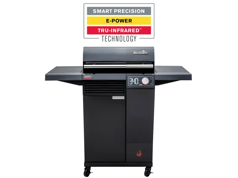 Der Char-Broil Elektrogrill Smart-E erreicht starke Hitze und innovative Funktionen für komfortables Grillen mit Stil.