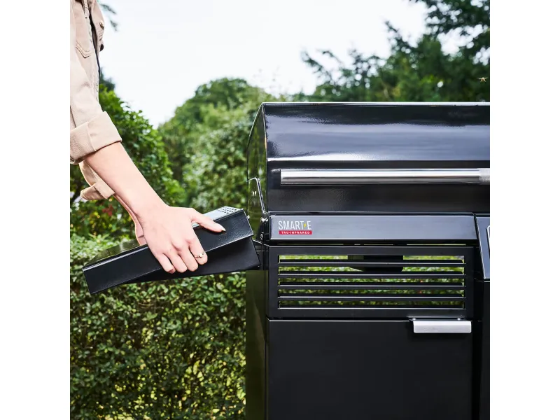 Der Innenraum und die Grillroste sind so gestaltet, dass sie intensive Hitze, Fett und Feuchtigkeit vertragen. Dadurch bleibt der Smart-E über viele Jahre hinweg zuverlässig.