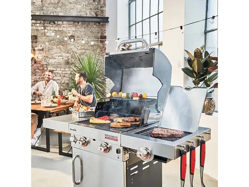 Der Char Broil Gasgrill Professional Pro lässt beim Grillen keine Wünsche offen. Der kleine Grillwagen punktet mit einem Hochleistungs-Sear-Brenner, hohem Komfort und ist besonders für Balkone und kleinere Terrassen geeignet. Mit zwei leistungsstarken Brennern ist der Grill für die Versorgung von bis zu vier Personen geeignet. Mit einer hochwertigen Verarbeitung aus Edelstahl wird der Grill auch optisch zum Hingucker.