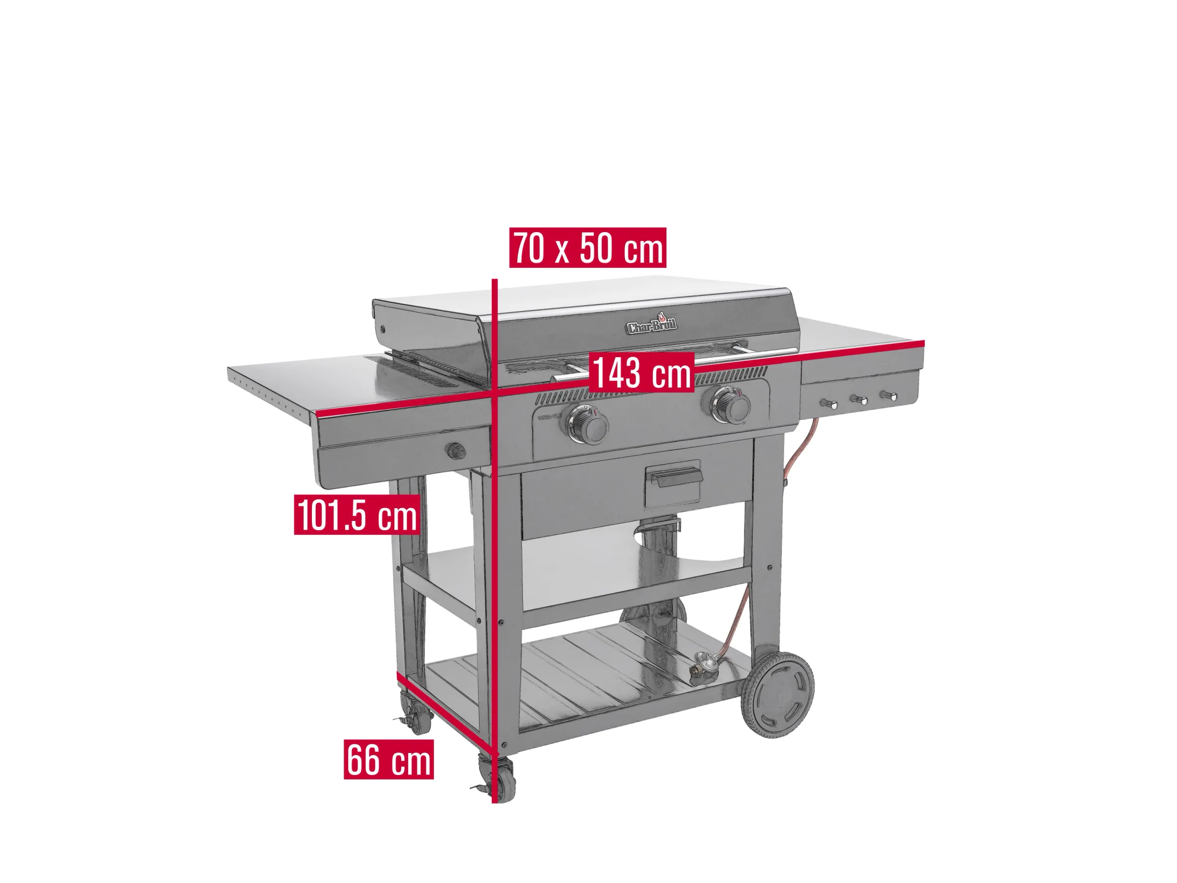Der Griddle-Gasgrill Versa-Tile von Char-Broil revolutioniert das Grillen, indem er Griddle, Grill und Pizzaofen in einem Gerät vereint und damit für ein besonders abwechslungsreiches Kocherlebnis sorgt. Als 2-Zonen Griddle-Gasgrill eignet er sich perfekt für gesellige Zusammenkünfte mit 4 bis 6 Personen. Die großzügige Grillfläche von 70 cm x 50 cm bietet reichlich Platz, um verschiedenste Speisen gleichzeitig zuzubereiten und allen Geschmäckern gerecht zu werden.