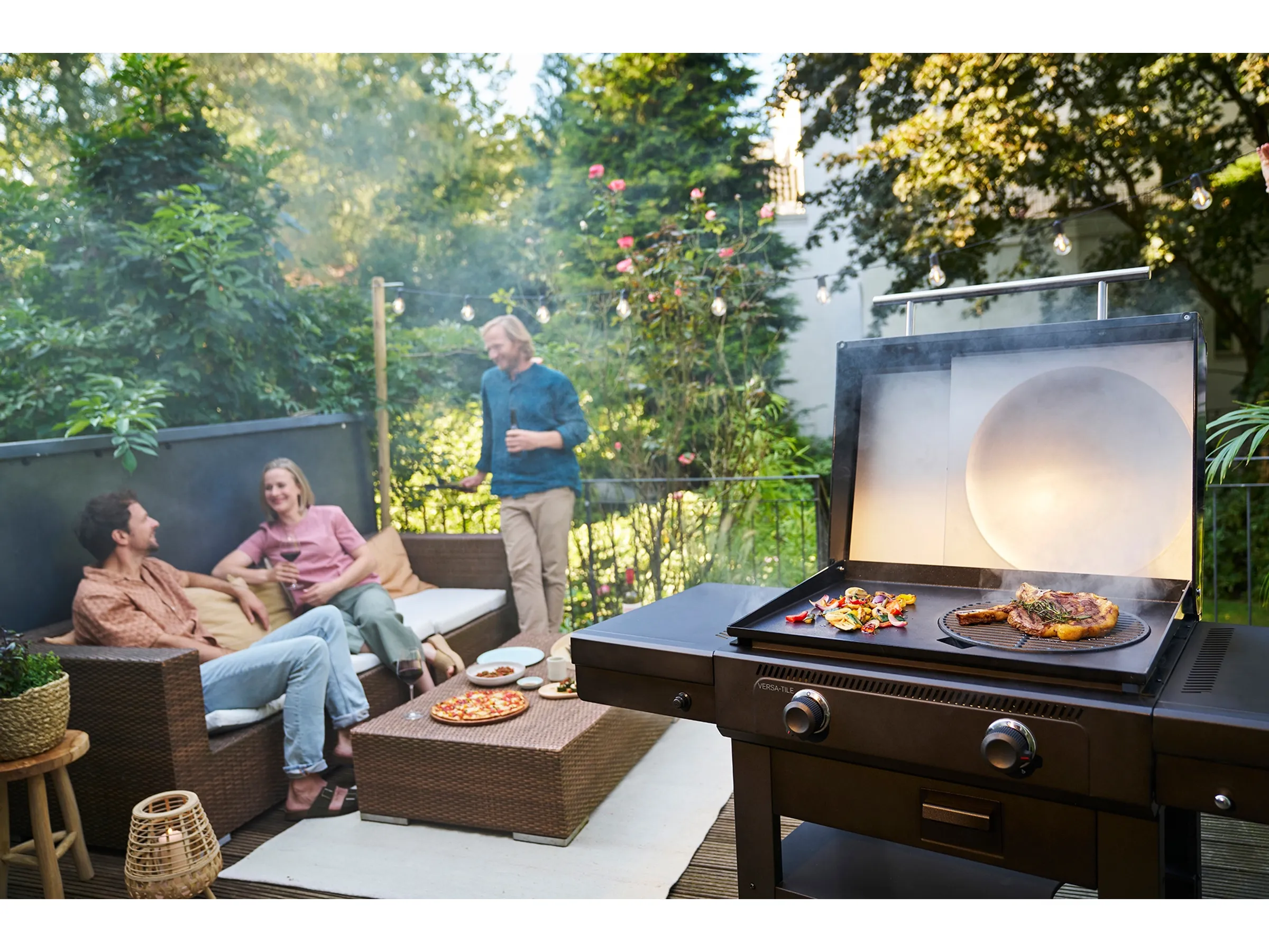Mit dem patentierten 3-in-1 Tile-Cooking-System lassen sich die Grill-Kacheln im Handumdrehen austauschen, wodurch deiner Kreativität beim Zubereiten keine Grenzen gesetzt sind. Die Pizza-Kachel mit Deckelkuppel sorgt für köstlich knusprige Pizzen, während die Grillrost-Kachel für perfekte Steaks und Grillstreifen sorgt. Für Gerichte wie Gemüse, Tacos oder Smashed Burger steht dir die erweiterte Griddle-Kachel zur Verfügung, die dir eine große Bratfläche bietet. So zauberst du zu jedem Anlass abwechslungsreiche Leckereien und sorgst für rundum zufriedene Gäste.