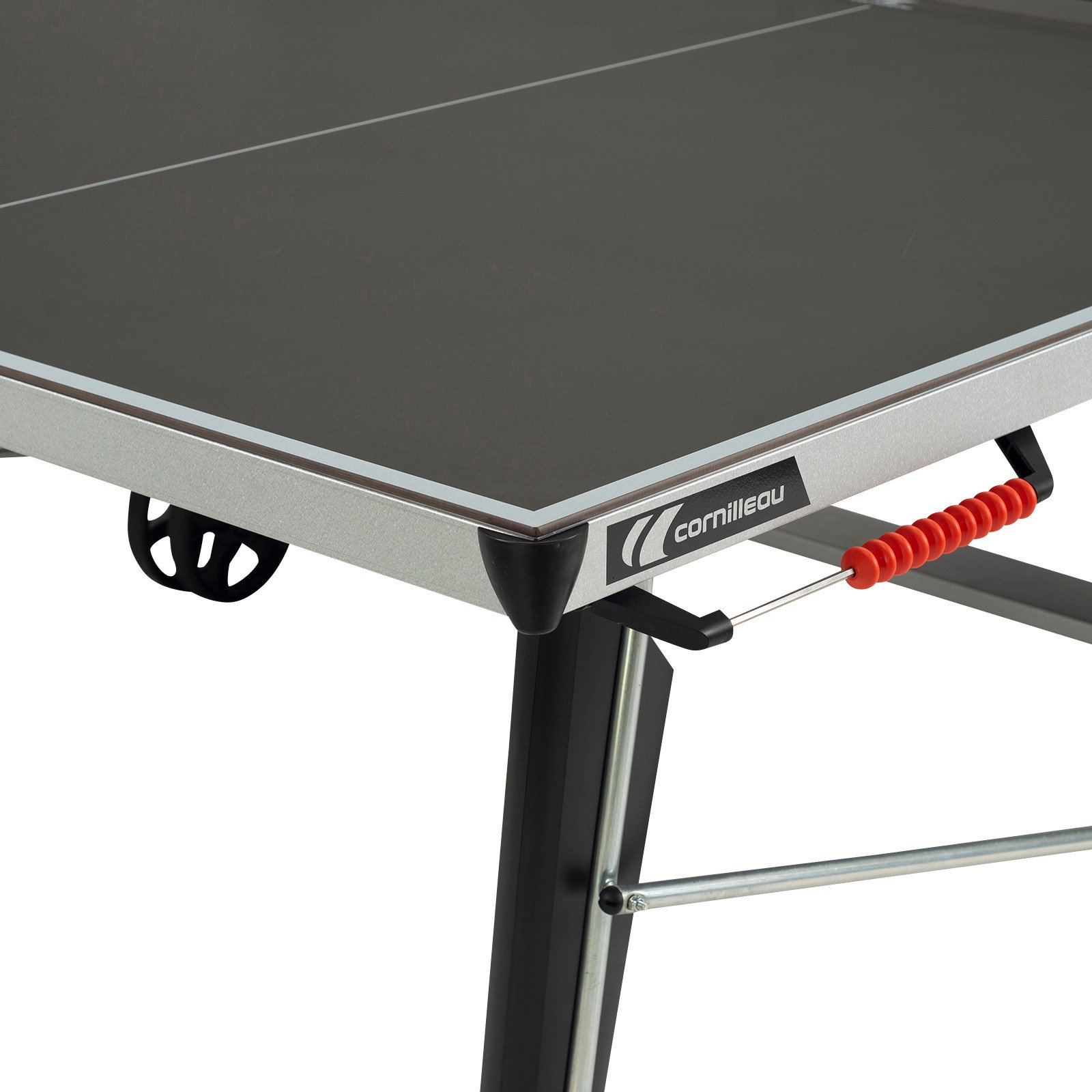 Die Cornilleau Outdoor ist mit dem patentierten DSI-Verriegelungsmechanismus ausgestattet und ermöglicht Ihnen eine einfache Handhabung der Platte. Durch die extra großen Transportrollen ist es möglich, die Platte selbst über unebenes Gelände oder Rasen zu bewegen. Der robuste Stahlrahmen bietet Ihnen eine hohe Standfestigkeit und in Verbindung mit den großen Füßen finden Sie auf jedem Untergrund den idealen Stand.