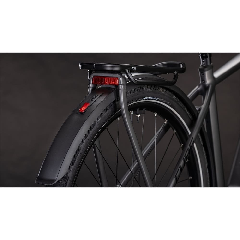 Für die entsprechende Reichweite sorgt der 800 Wh starke PowerTube Akku und weil so viel Vortrieb auch top kontrolliert werden will, haben CUBE kraftvolle hydraulische Scheibenbremsen von Shimano verbaut, die das Bike selbst bei Nässe zuverlässig verzögern. Was noch? Eine Suntour Luftfedergabel, einen verstellbaren Vorbau, eine Parallelogramm-Sattelstütze, einen integrierten Gepäckträger IC 3.0 und eine Zubehör-Vollausstattung.
