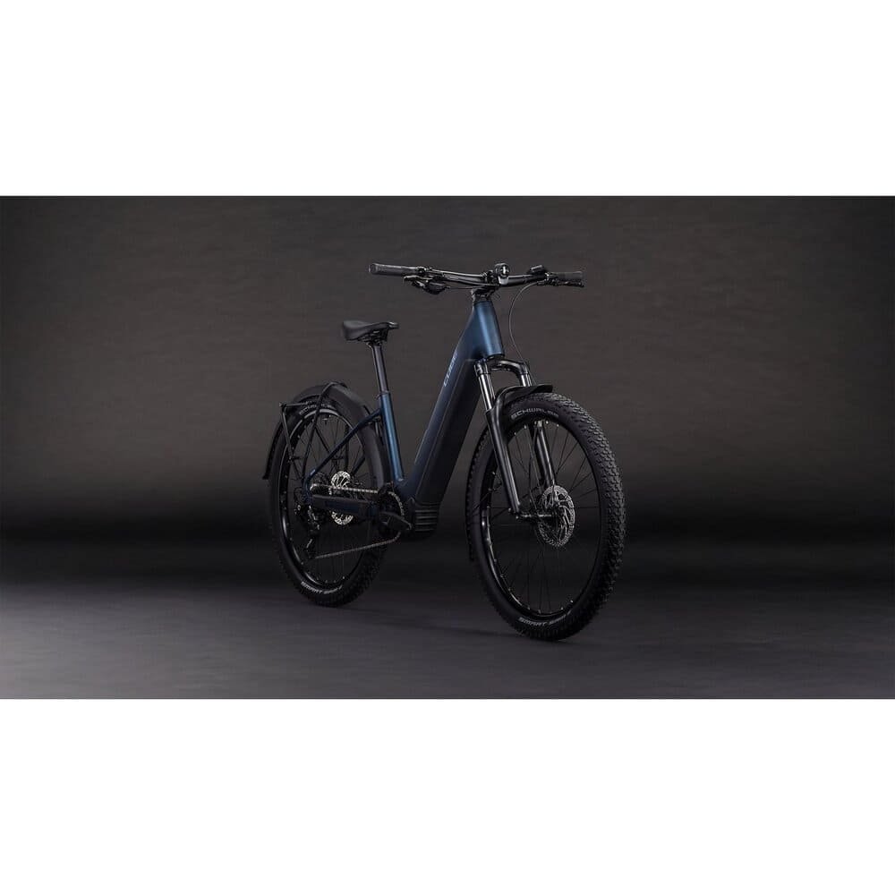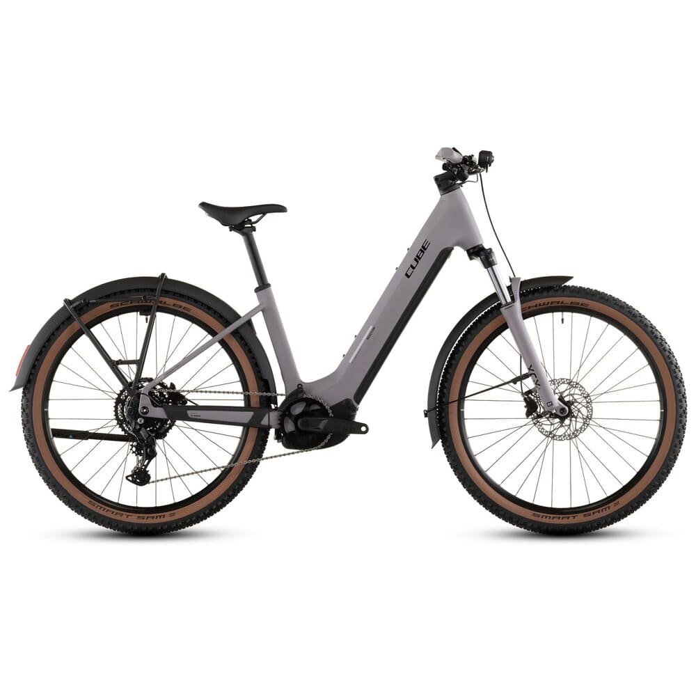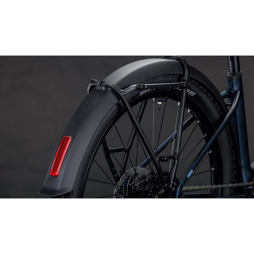 Außerdem haben CUBE dem Bike eine Federgabel mit 100 mm Federweg spendiert, die Schlaglöcher in der City und Ruckler auf dem Trail souverän glattbügelt. Dazu griffige Schwalbe Smart Sam 2.6 Zoll Reifen, einen bequemen Sattel und bequeme Griffe für konstant hohen Fahrkomfort. Last, but not least gibt es umfangreiches Zubehör in Form von Schutzblechen, Lichtern, Gepäckträger und Seitenständer.