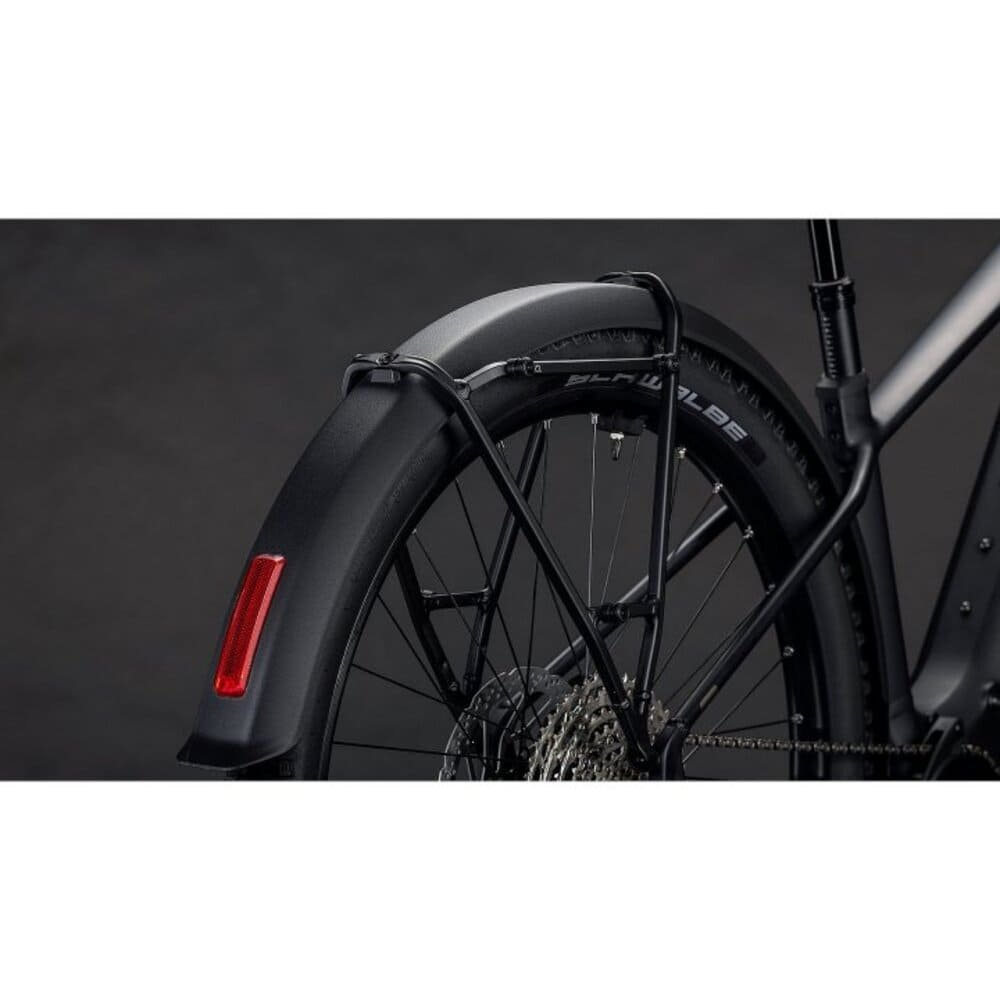 Das CUBE Reaction Hybrid Pro FE kombiniert die Vielseitigkeit eines voll ausgestatteten Tourers mit der Robustheit eines Mountainbikes und dem Support durch einen E-Motor. Dabei hat das Bike neben Schutzblechen, Gepäckträger, Seitenständer und Lichtern noch weitere Highlights auf Lager. Dank dem leistungsstarken Bosch CX Motor und 800 Wh starken Akku sind jede Menge Power und Reichweite garantiert, und zwar auf jeder Route, ob über Asphalt oder im Gelände.