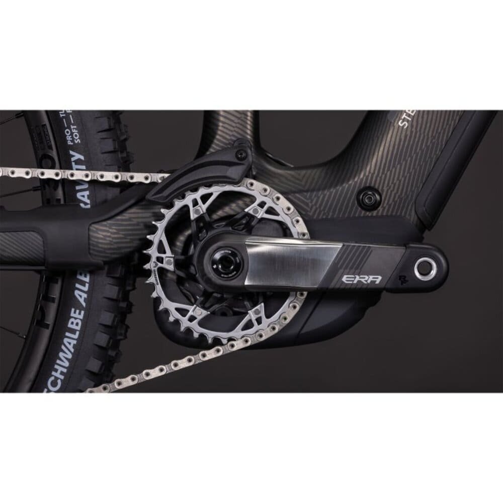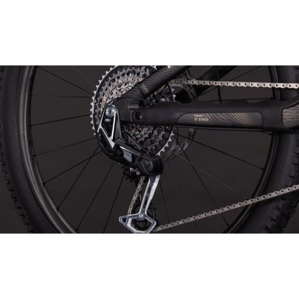 Den enormen Vortrieb verdankt das Fully dem Bosch CX-R Motor mit bis zu 100 Nm Drehmoment, der von einem 800 Wh starken Akku gespeist wird. Diese Power wohldosiert auf den Boden bringt der SRAM 12-Gang XX Eagle Transmission Antrieb in Zusammenarbeit mit der RaceFace Era Carbonkurbel. Präziseste Geschwindigkeitskontrolle ist das Spezialgebiet der progressiv verzögernden hydraulischen Magura Gustav Pro Scheibenbremsen. Noch mehr Kontrolle beim Bergabfahren auf steilen, ruppigen Trails gefällig? Die versenkbare Sattelstütze macht es möglich.