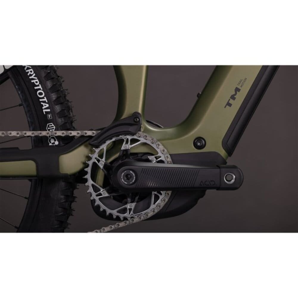 Ganz im Sinne der Trail Motion Tradition von CUBE bringen sie mit dem Stereo Hybrid ONE77 HPC TM ein ganz besonderes Bike auf die Trails. Zum einen haben sie einen kraftvollen Bosch CX Motor verbaut, den ein 800 Wh starker PowerTube Akku effizient vorwärts treibt. Diese Power bringt der leichtgängige, super präzise arbeitende elektronische SRAM GX Eagle Transmission 12-fach Antrieb über die ACID Carbonkurbel top übersetzt auf den Boden – ein Kiox 400c Display liefert die entsprechenden Daten.