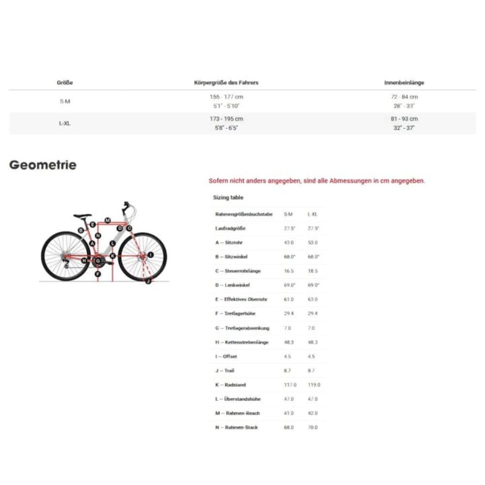 - Zwei ergonomisch optimierte Größen vereinfachen die Auswahl und bieten doch vollen Komfort für alle Fahrer:innen von 1.55m bis 1.96m – mit besonders tiefer Durchstiegshöhe im Tiefeinsteiger-Setup.