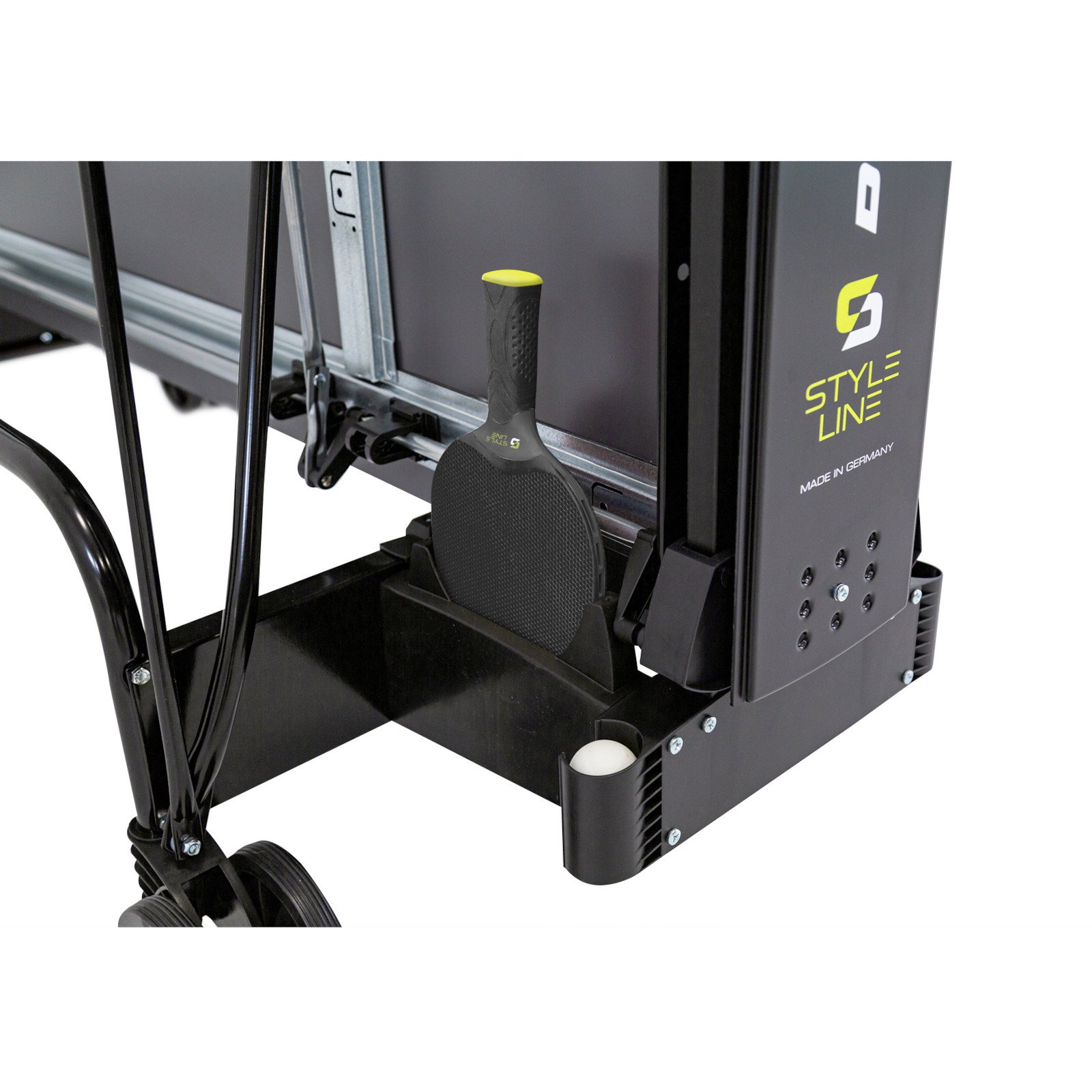 Damit Sie zu jeder Zeit einfach losspielen können, ist an den Seiten eine Ball- und Schlägerhalterung angebracht und die Netzgarnitur ist integriert. So haben Sie alles, was Sie für eine Partie Tischtennis brauchen, direkt griffbereit.