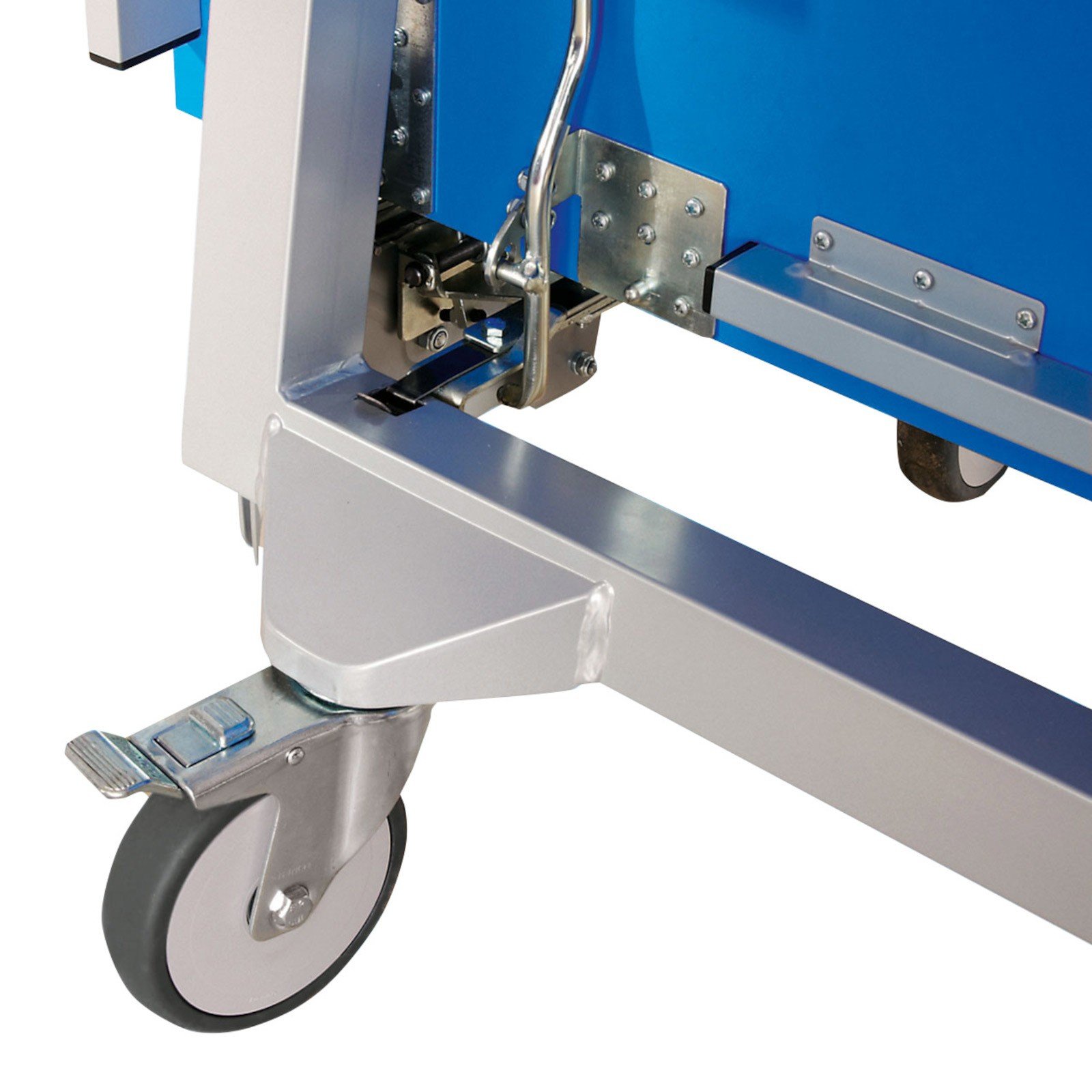 • Vier Lenkrollen, 125 mm mit Gummilauffläche, davon zwei Rollen mit Feststeller (Bremse)