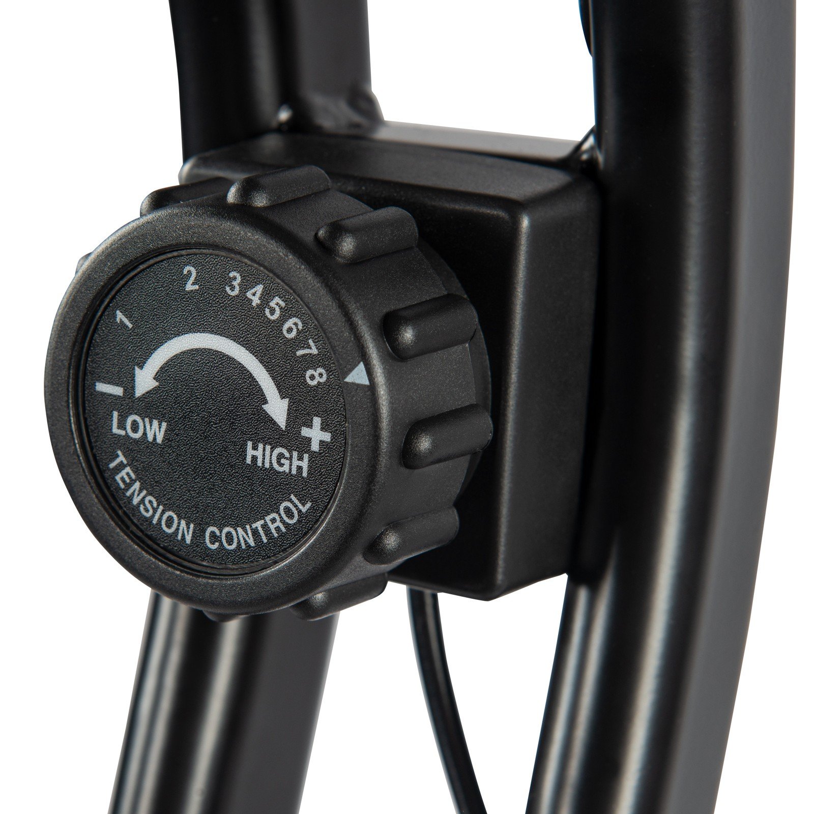 Der Duke Fitness Heimtrainer XB30 ist ein ganz schlichter Fahrradtrainer mit platzsparenden Maßen und einer Magnetbremse mit 8 Widerstandsstufen. Die Magnetbremse arbeitet wartungsfrei und ist besonders leise. So können Sie das X-Bike auch vor den Fernseher stellen und während des Trainings bei Ihrer Lieblingsserie mitfiebern oder bei einer Quizshow mitraten.