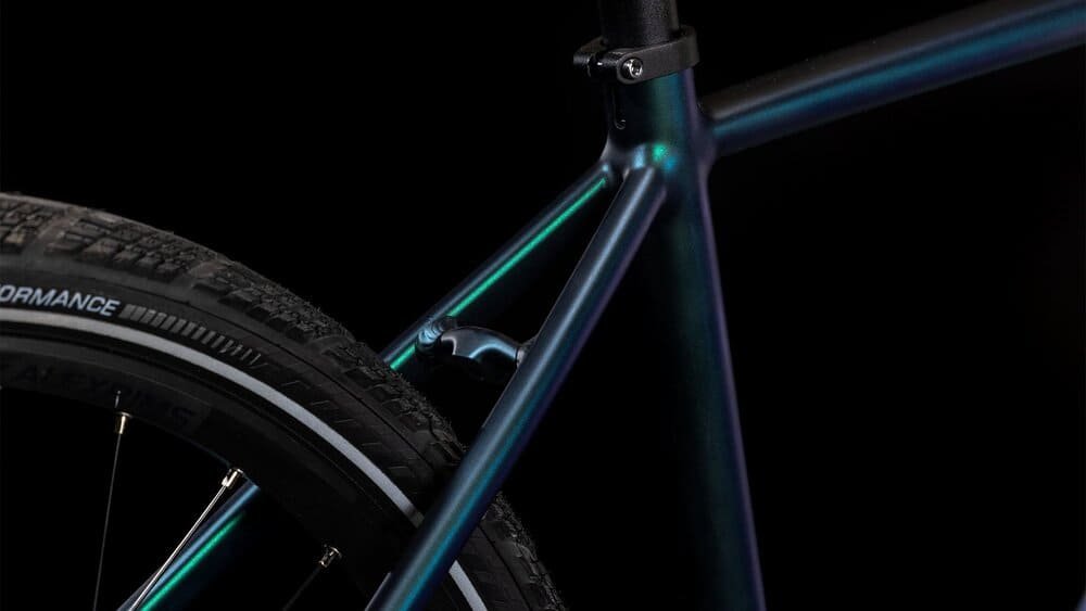 Zuverlässige Bremsmanöver bei sämtlichen Witterungsbedingungen sind das Spezialgebiet der hydraulischen Shimano Scheibenbremsen. Dazu haben CUBE 50 mm breite, sagenhaft griffige Marathon Efficiency Reifen von Schwalbe verbaut. Das Ausstattungspaket komplett macht eine Vollcarbongabel.