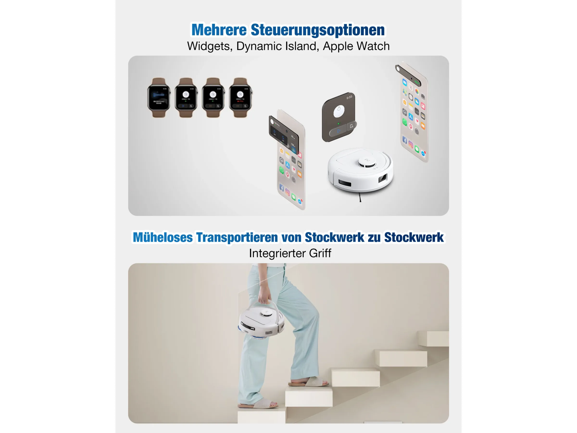 Durch das geringe Gewicht lässt sich der Roboter zudem leicht transportieren oder von einem Raum in den anderen umsetzen. Dies erhöht die Flexibilität im Alltag und macht ihn zu einem praktischen Helfer für unterschiedliche Wohnsituationen.