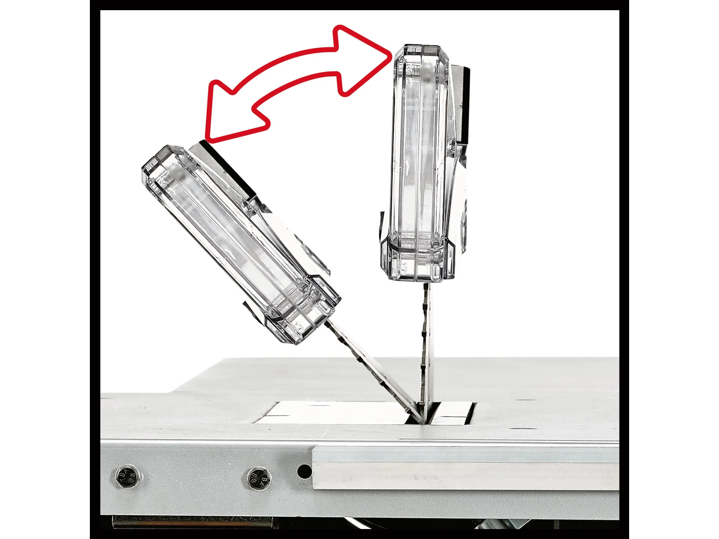 Die Tischverlängerung macht eine einfache Handhabung langer Werkstücke, beispielsweise beim Möbel- oder Konstruktionsbau möglich. Der transparente Sägeblattschutz gewährt eine direkte Sicht auf den Schnitt – für eine sichere Arbeit und akkurate Ergebnisse.