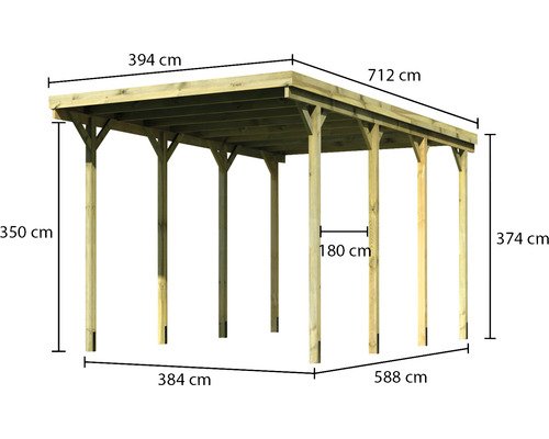Einzelcarport Karibu Caravan 394 x 712 cm kesseldruckimprägniert