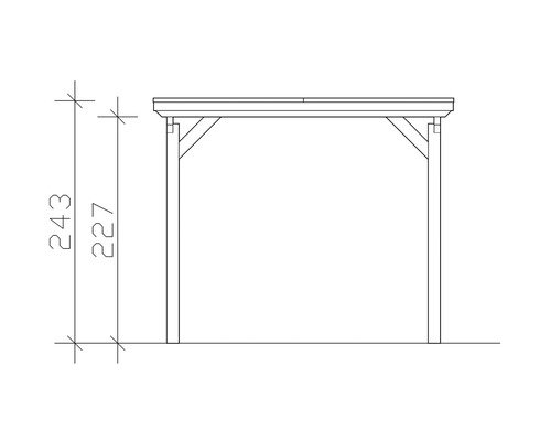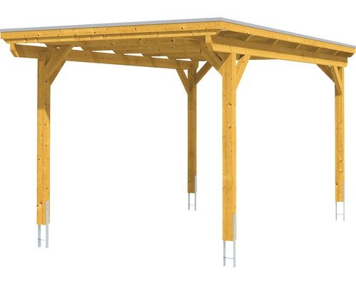 Im Lieferumfang enthaltenVorgefertigter Bausatz aus Leimholz (BSH-Fichte), farblich behandelt, Pfosten 12 x 12 cm, H-Pfostenanker zum Einbetonieren, Aluminium-Dachplatten mit Trapezprofil, Holz-Blende mit Aluminium-Abschlusskante, Montagematerial