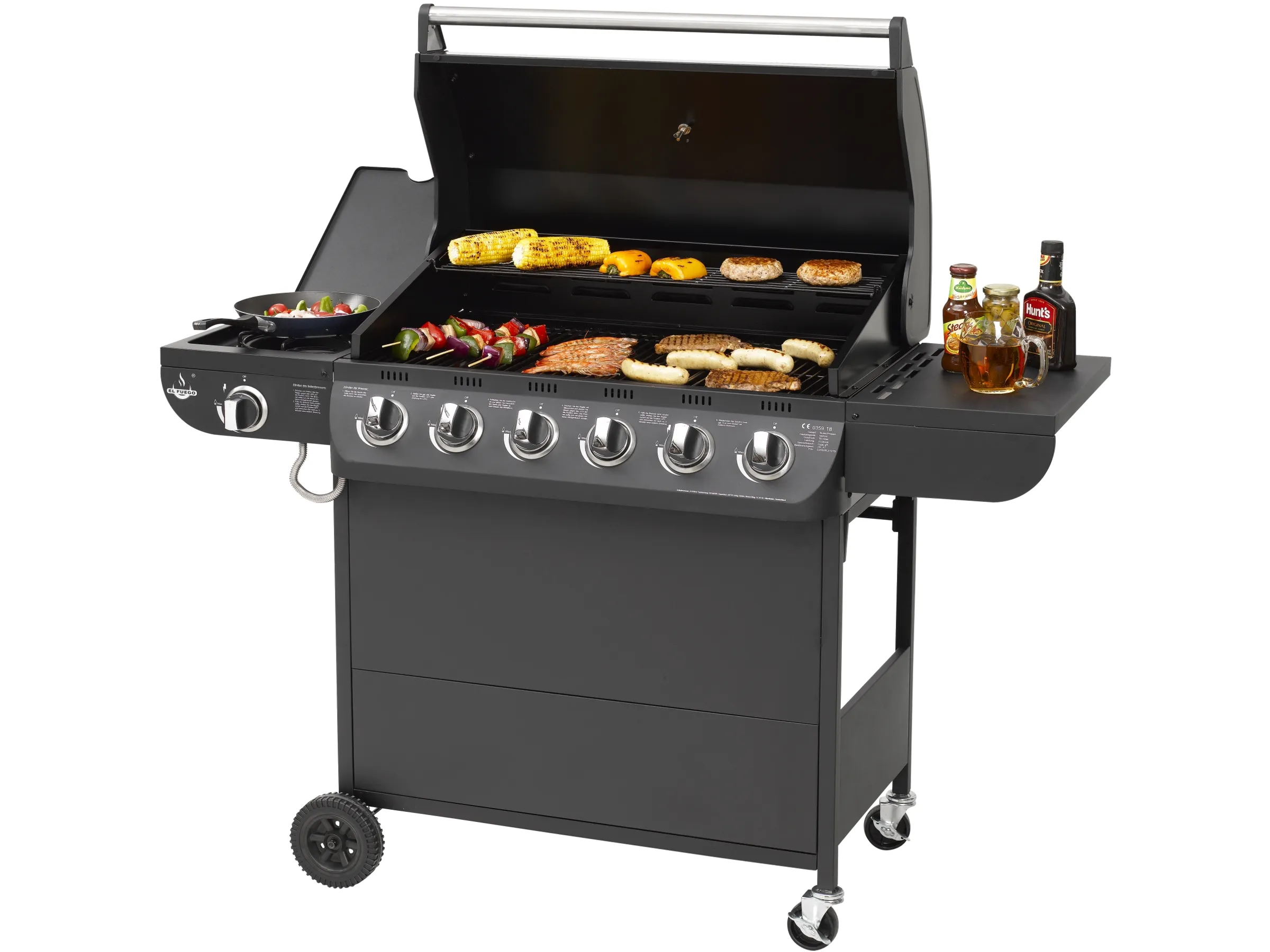 Mit dem El Fuego Columbus 6 Brenner und dem Seitenbrenner ist eine sehr breite Palette an Grillmethoden möglich: