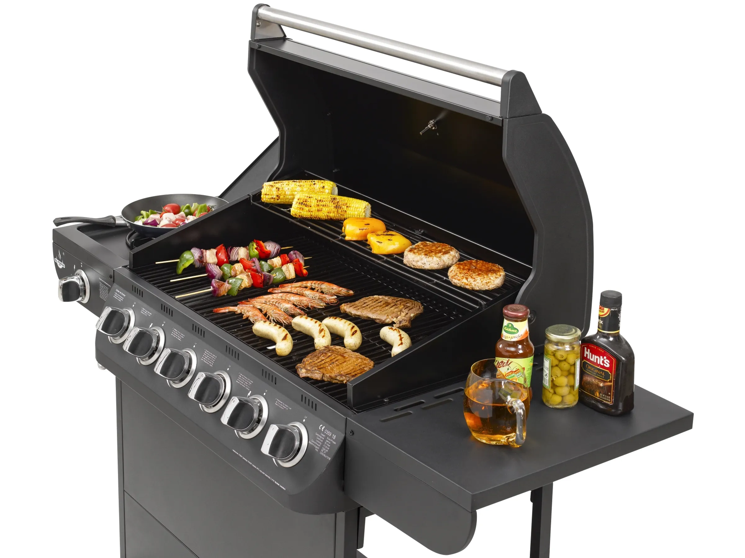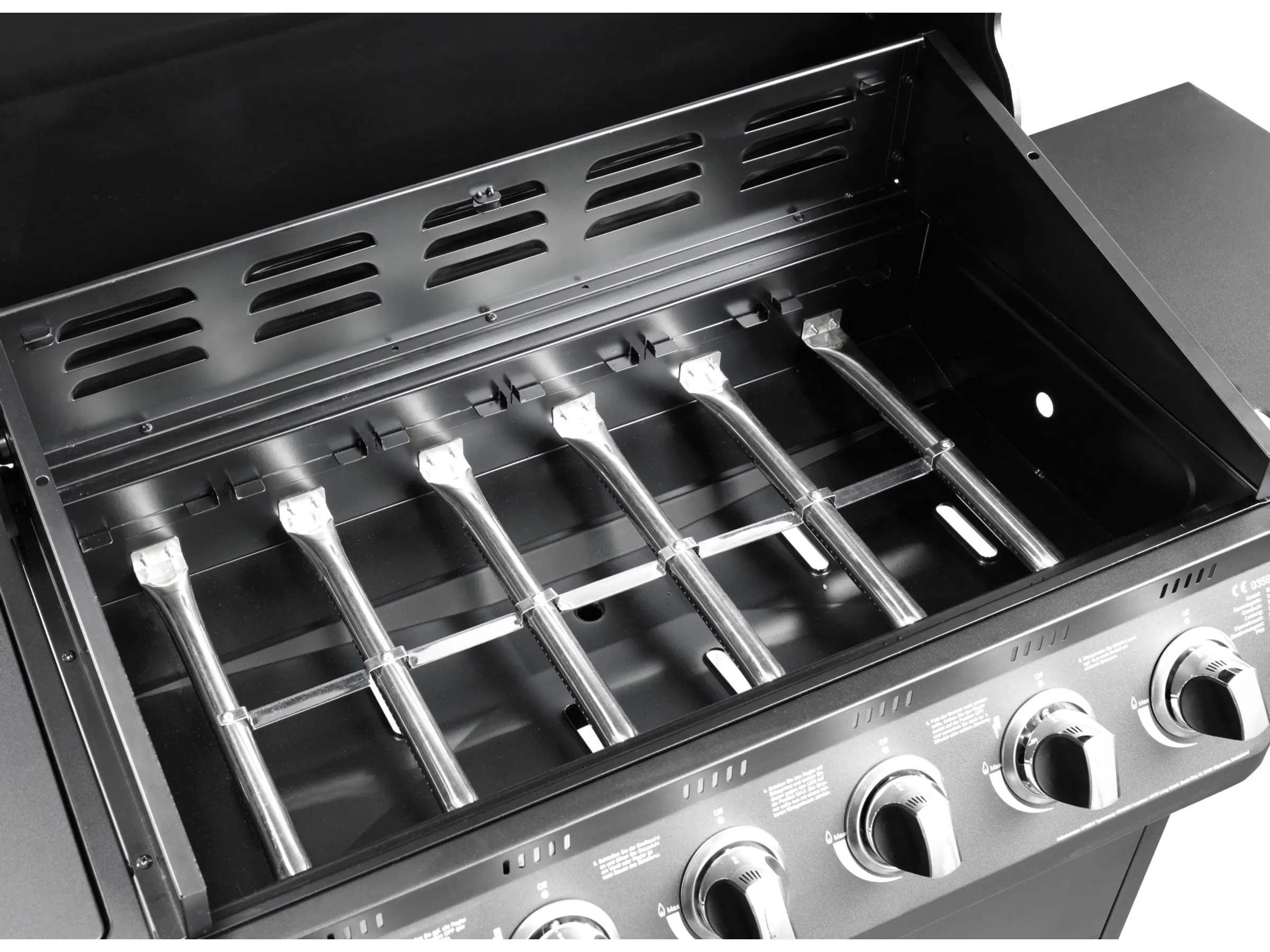 – 6 Hauptbrenner je 2,93 kW + 1 Seitenbrenner 3,5 kW (insg. 21,08 kW)
