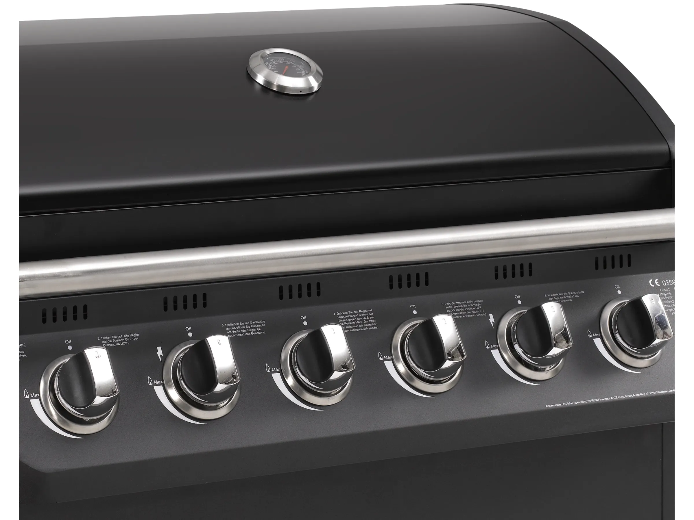 Die Bedienung des Columbus ist benutzerfreundlich gestaltet. Die sechs Regler sind gut erreichbar, intuitiv bedienbar und reagieren präzise. Die Zündung erfolgt zuverlässig, sodass der Grill schnell einsatzbereit ist. Der Deckelgriff ist isoliert, damit man den Deckel auch bei hohen Temperaturen gefahrlos öffnen kann.