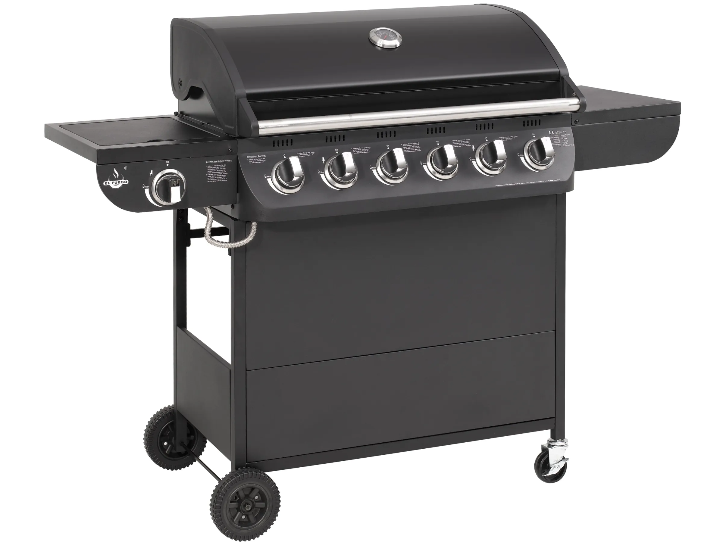 El Fuego Gasgrill Columbus 6 Brenner mit Seitenbrenner Schwarz