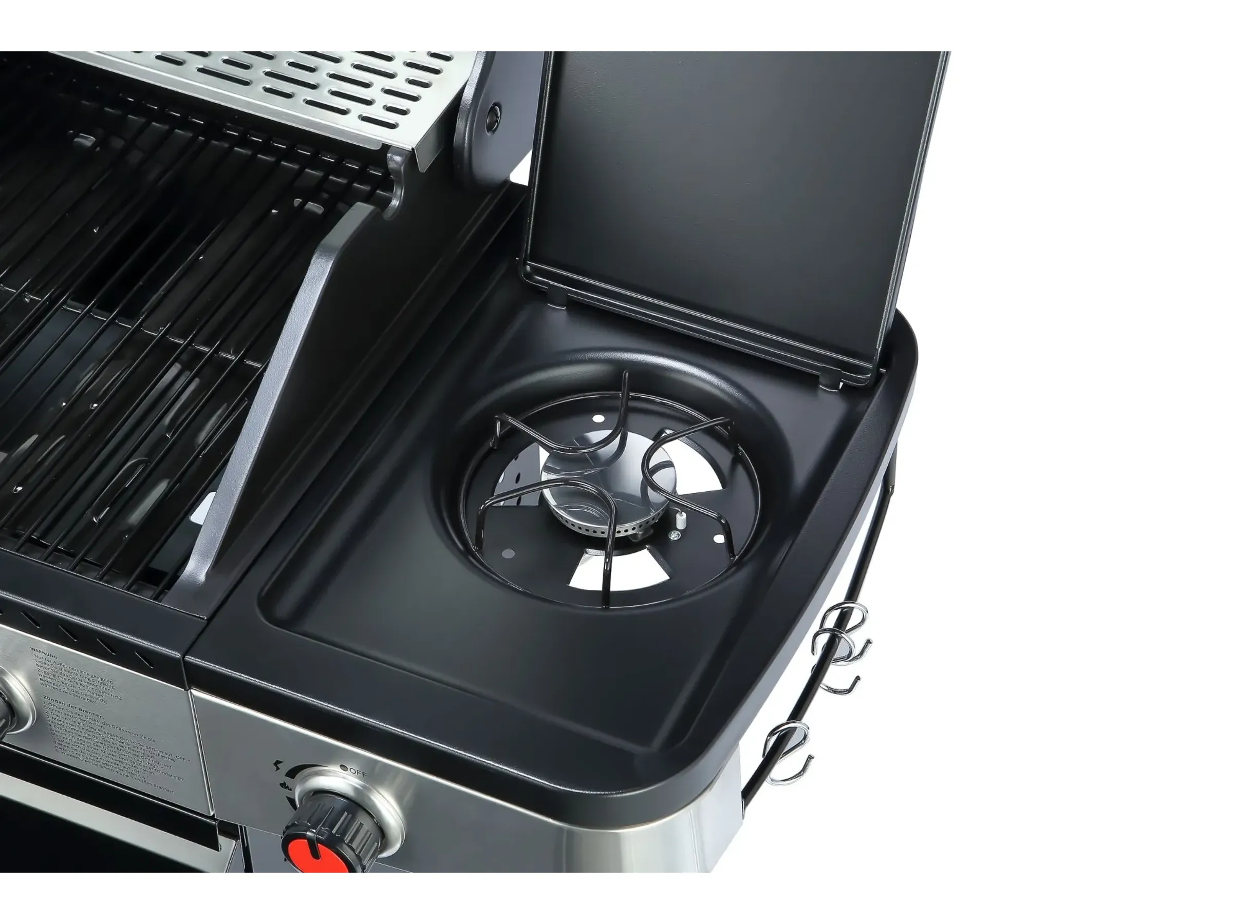 Der zusätzliche Seitenbrenner erweitert die Möglichkeiten erheblich. Er eignet sich hervorragend für Pfannen, Soßen oder kleine Beilagen und macht den Grill zu einer kompletten Außenküche. Diese Funktion ist besonders praktisch für Nutzer, die alles an einem Ort zubereiten möchten.