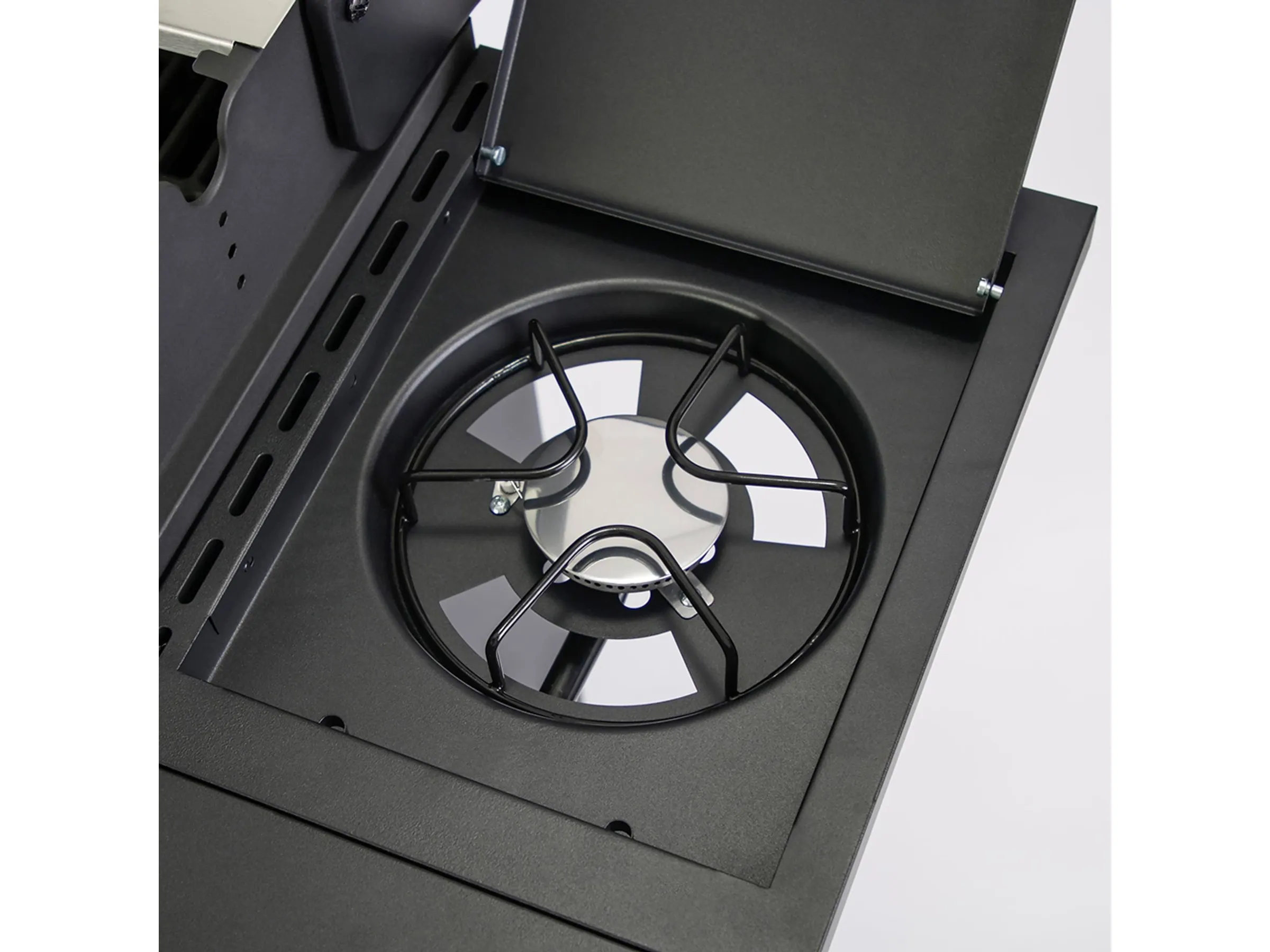 Der integrierte Seitenbrenner erweitert die Nutzfläche zusätzlich und verwandelt den Grill in eine kleine Außenküche. Ob das Kochen von Saucen, das Erhitzen von Beilagen oder das Zubereiten kleiner Gerichte – der Seitenbrenner eröffnet zusätzliche kulinarische Möglichkeiten und macht das Grillen noch vielseitiger.