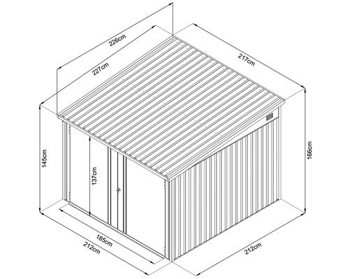 Aufstellmaße B x T ohne Dachüberstand212 x 212 cm