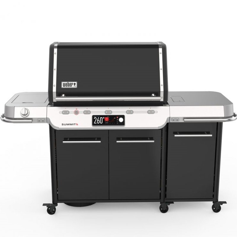 Der Weber Summit Smart Gasgrill beeindruckt nicht nur mit seiner digitalen Ausstattung, sondern auch mit seinem großzügigen Platzangebot, einschließlich eines großzügigen Seitenschrankes für Ihr Grillzubehör und einem integrierten Grillspieß. Die durchdachte Anordnung ermöglicht eine organisierte Aufbewahrung und verleiht Ihrem Grillplatz eine aufgeräumte Ästhetik.