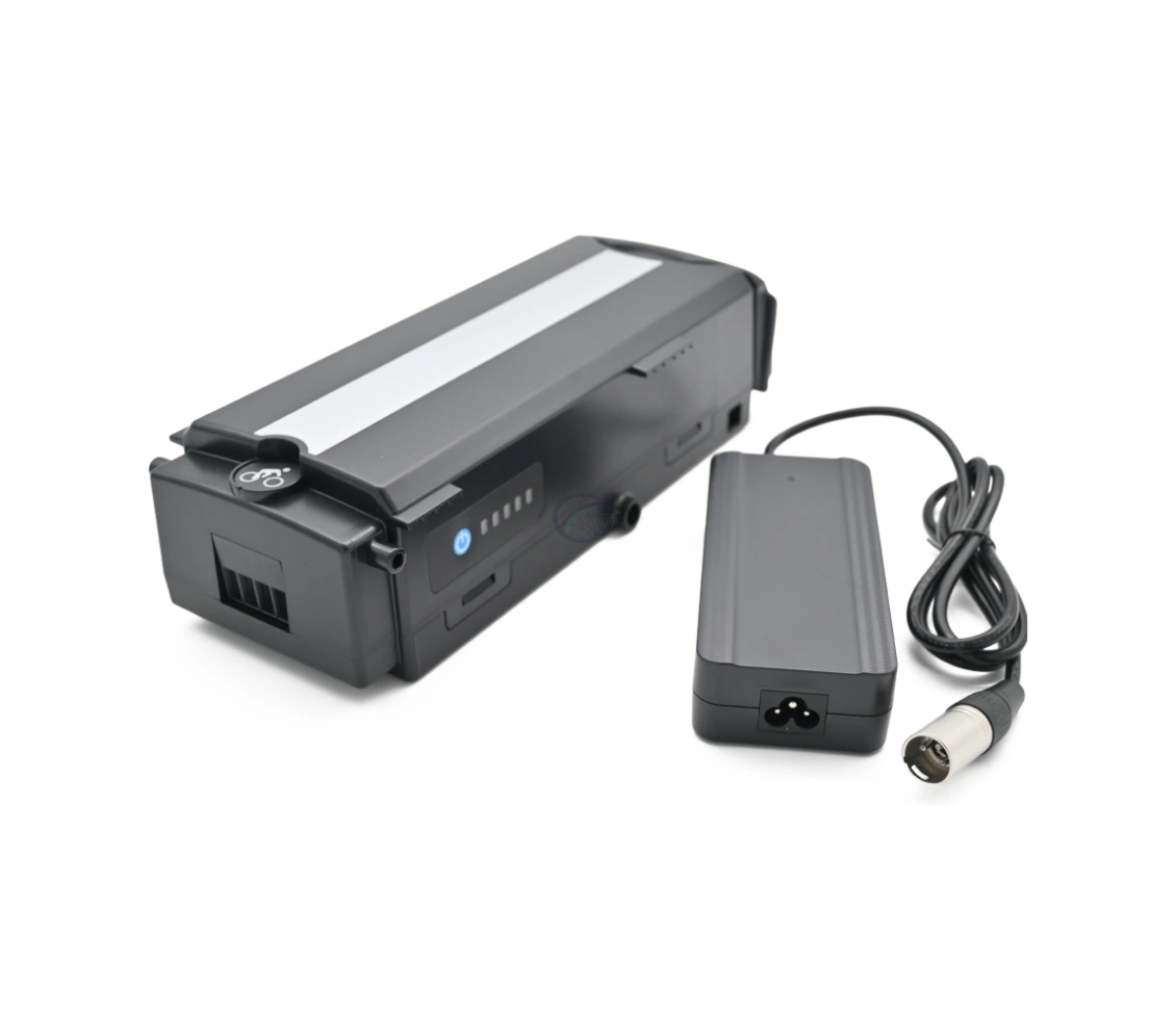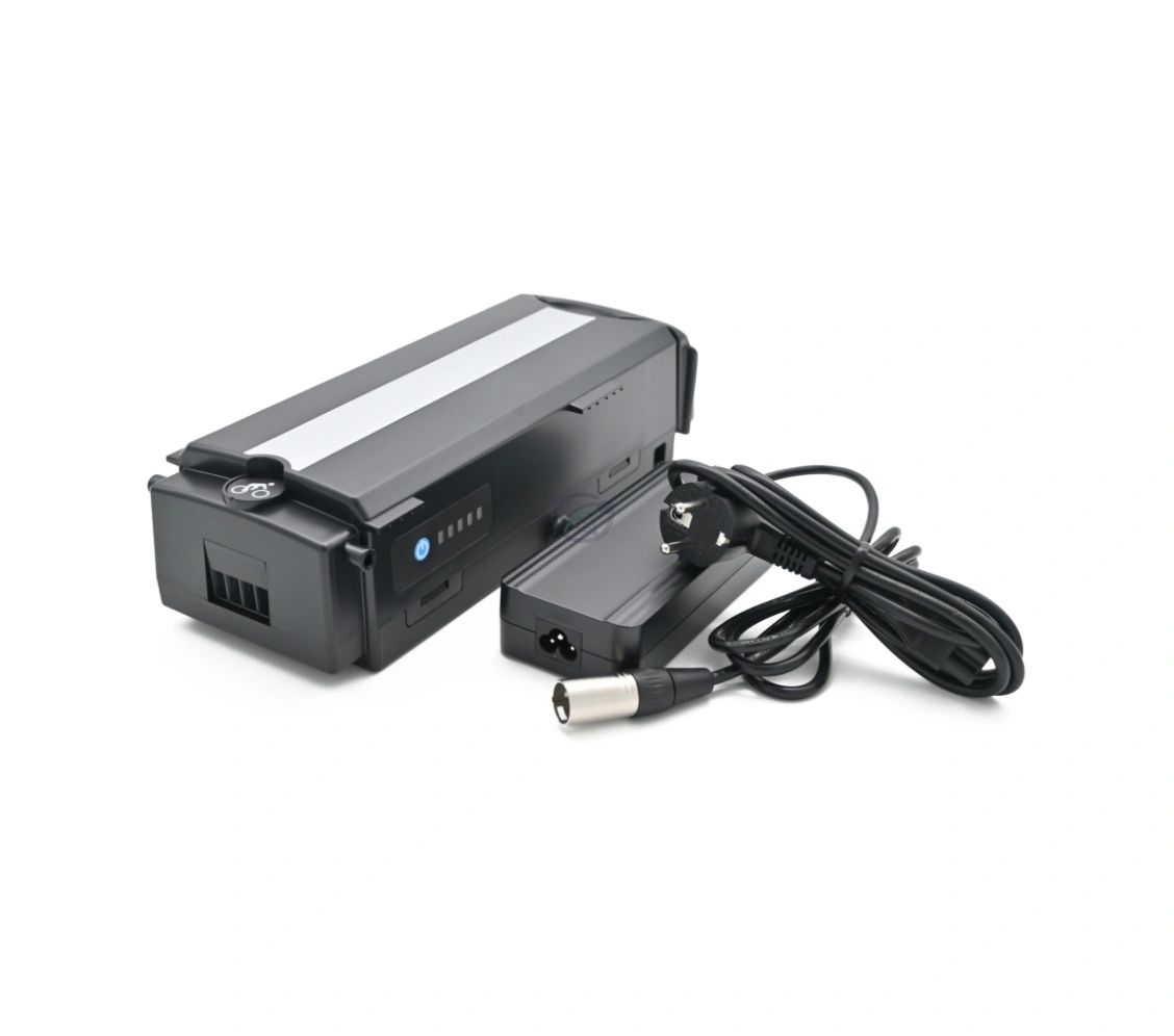 Wenn die LED-Batterieanzeige an der Seite des Akkus anzeigt, dass er nach einer Fahrradfahrt von 51 bis 101 Kilometern leer ist, kannst du den Akku einfach mit dem mitgelieferten Ladegerät aufladen. Der Status des Akkus kann auch auf dem Display überprüft werden. Die Ladebuchse dieses Akkus befindet sich unter dem Griff. Dank dieses Griffs kannst du den Akku einfach transportieren oder aus der Seite des Gepäckträgers entfernen, wo der Akku für den Gebrauch befestigt ist.