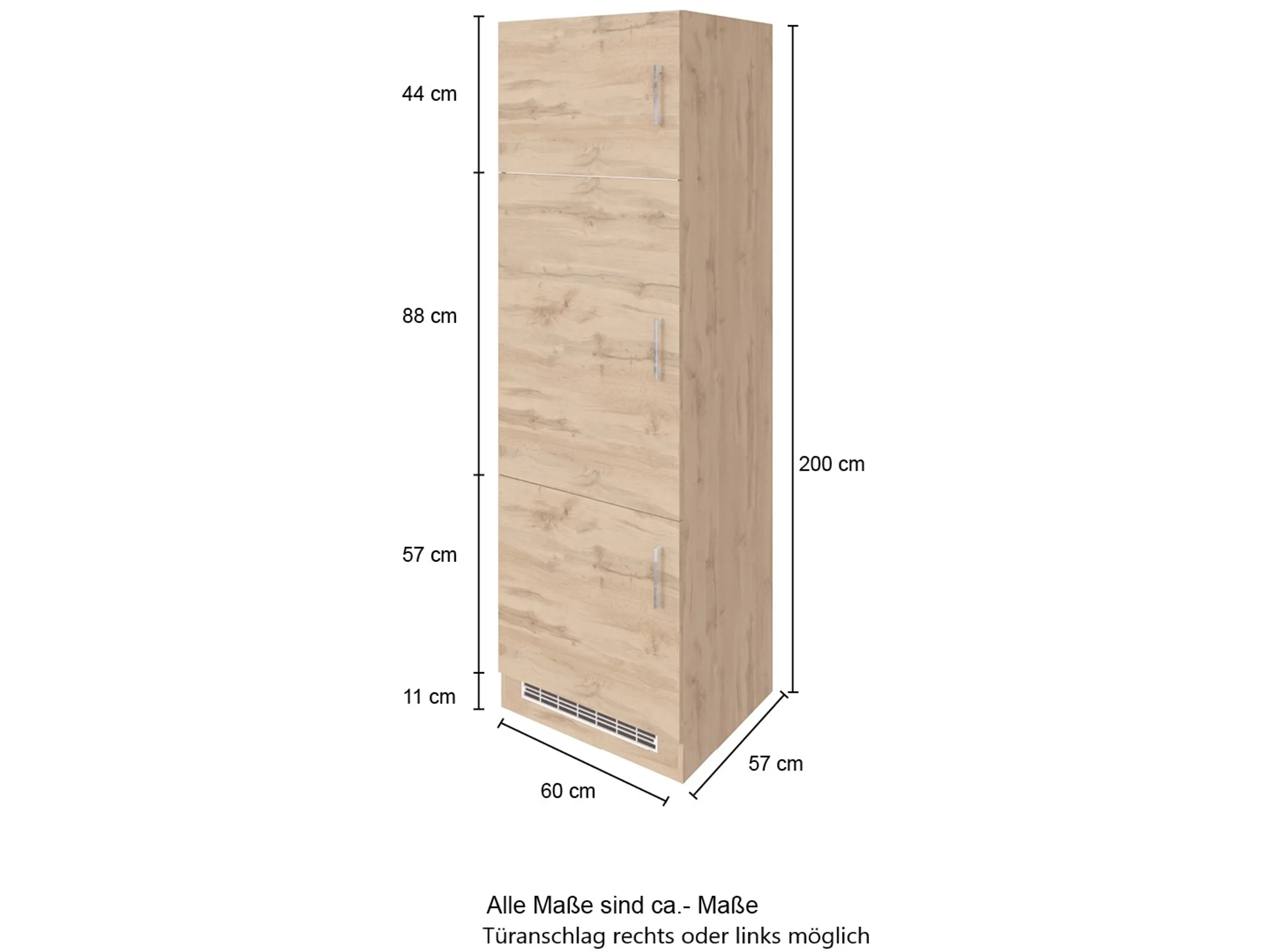 Held Möbel Küchen Kühlschrankumbau Sorrento B60 x H200 x T60cm Nische Wotaneiche