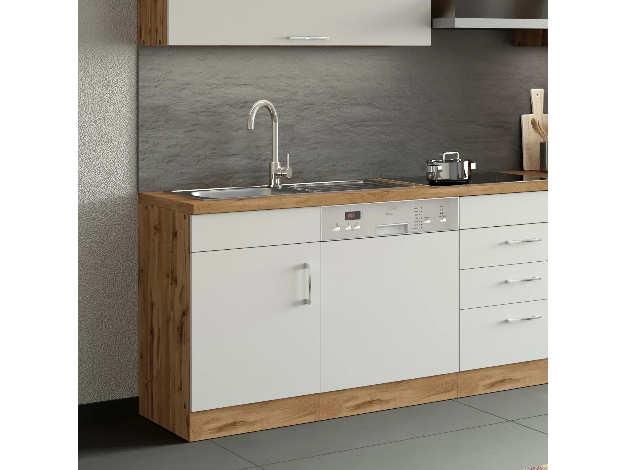 Gerade im Spülbereich sind Belastbarkeit und Pflegeleichtigkeit entscheidend. Die verwendeten Materialien lassen sich leicht reinigen und behalten auch bei intensiver Nutzung ihr ansprechendes Erscheinungsbild.