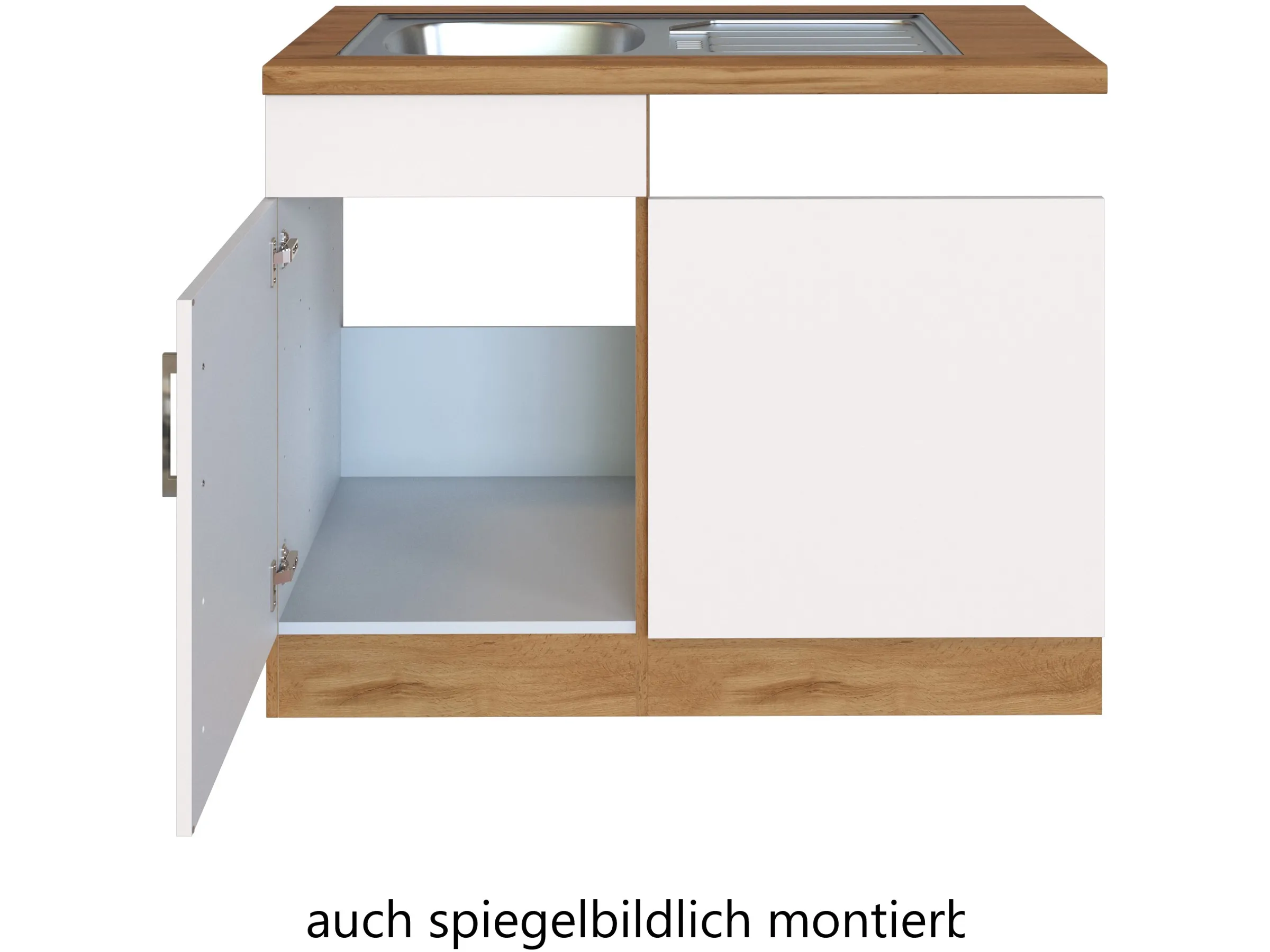 Held Möbel Küchen-Spülzentrum Sorrento 110x85x60cm Tür lende Sockel Weiß-W.Eiche