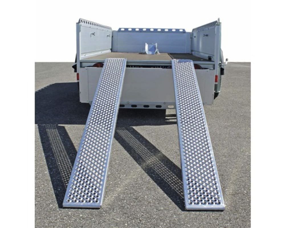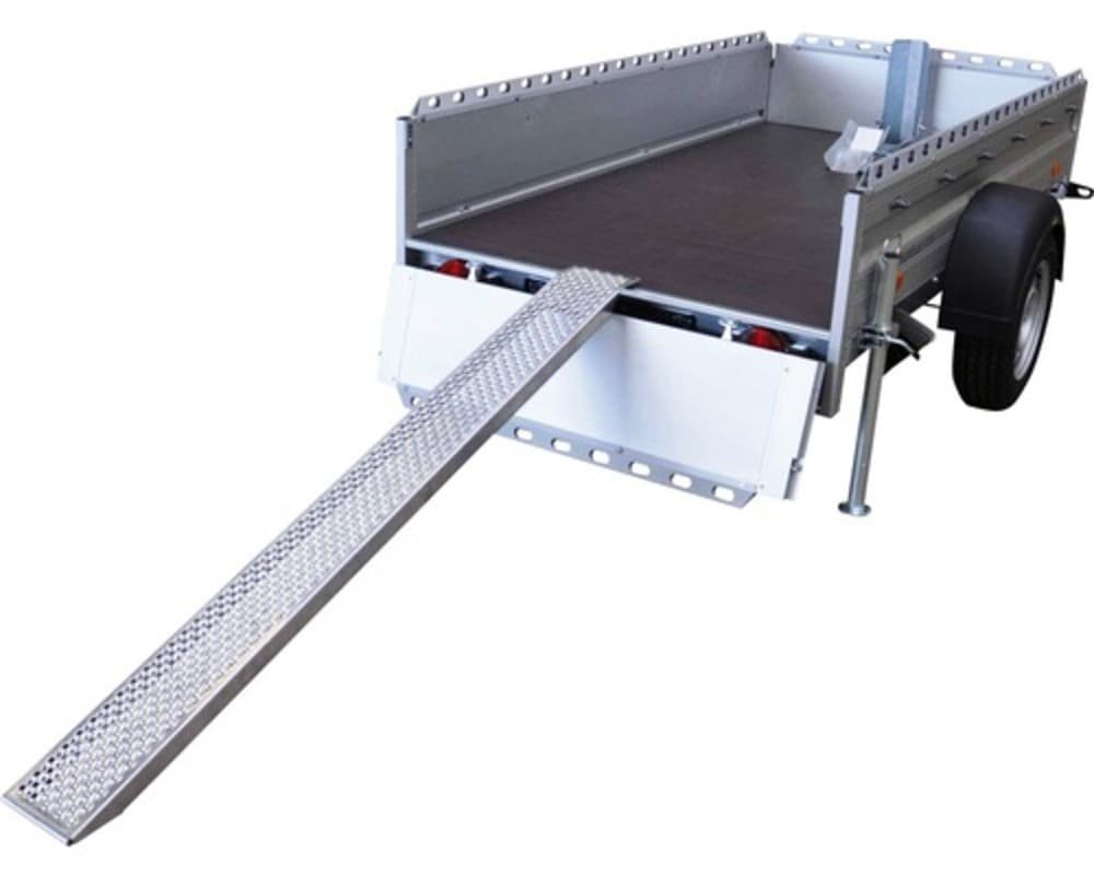 | Serienausstattung | 2 Auffahrschienen an den seitlichen Bordwänden befestigt, Klappen vorne und hinten mit versenkten Verschlüssen, Stützrad, 1 klappbarer Motorradständer auf durchgehender Bodenplatte, 4 seitige Reelings montiert |