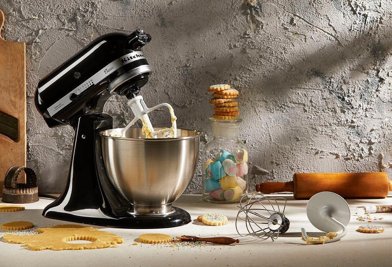 Die KITCHENAID Küchenmaschine 5K45SSEOB ONYX BLACK eignet sich hervorragend für klassische Rezepte wie Rührkuchen, Kekse, Cremes, Glasuren und einfache Teige. Sie unterstützt sauberes, präzises Arbeiten und liefert gleichmäßige Ergebnisse bei jeder Anwendung.