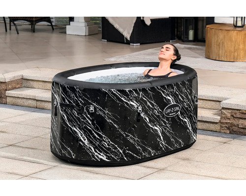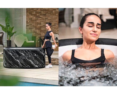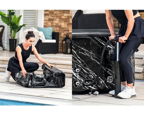Die edle Marmor-Optik (Marquita) des Eisbads verleiht Deinem Außenbereich eine stilvolle und moderne Note. Das elegante Design fügt sich nahtlos in jede Umgebung ein und sorgt für ein luxuriöses Ambiente.