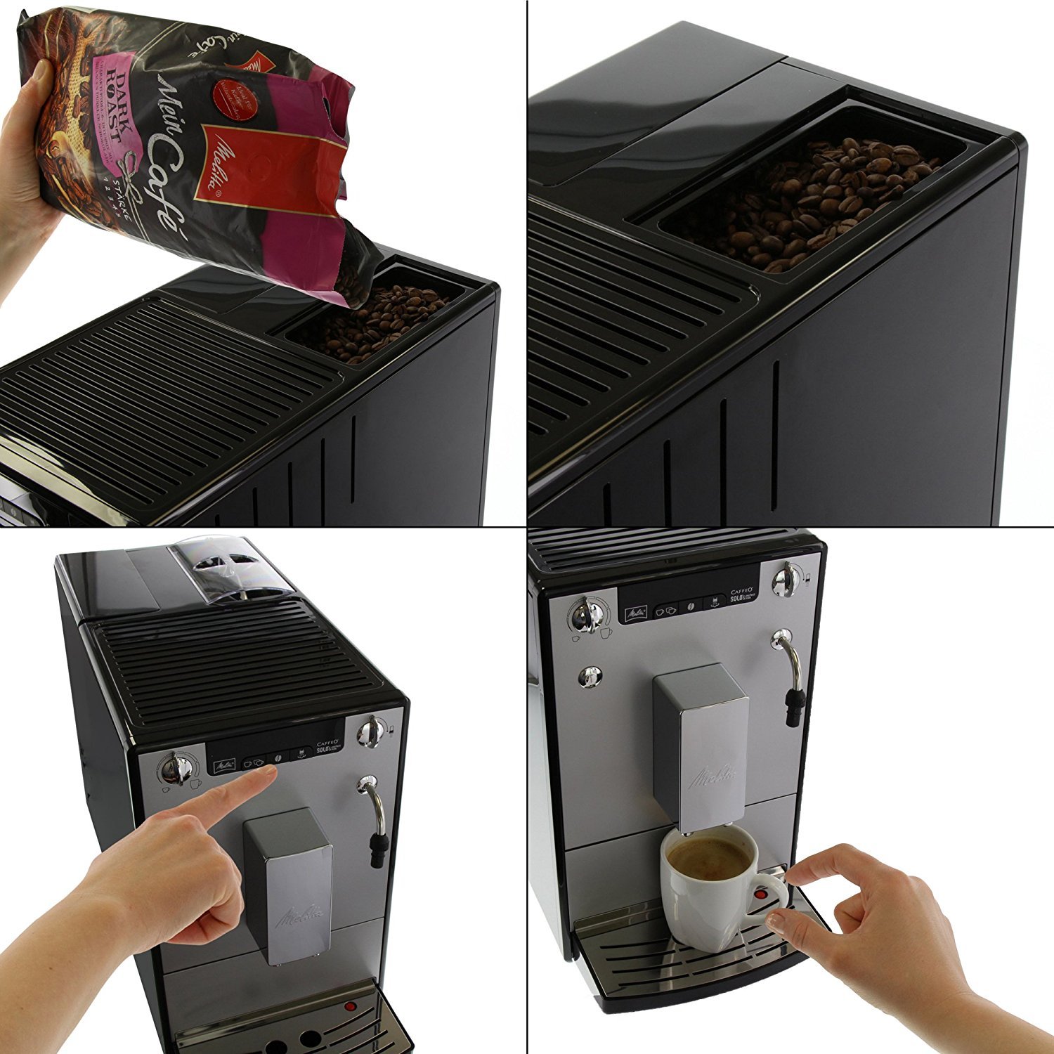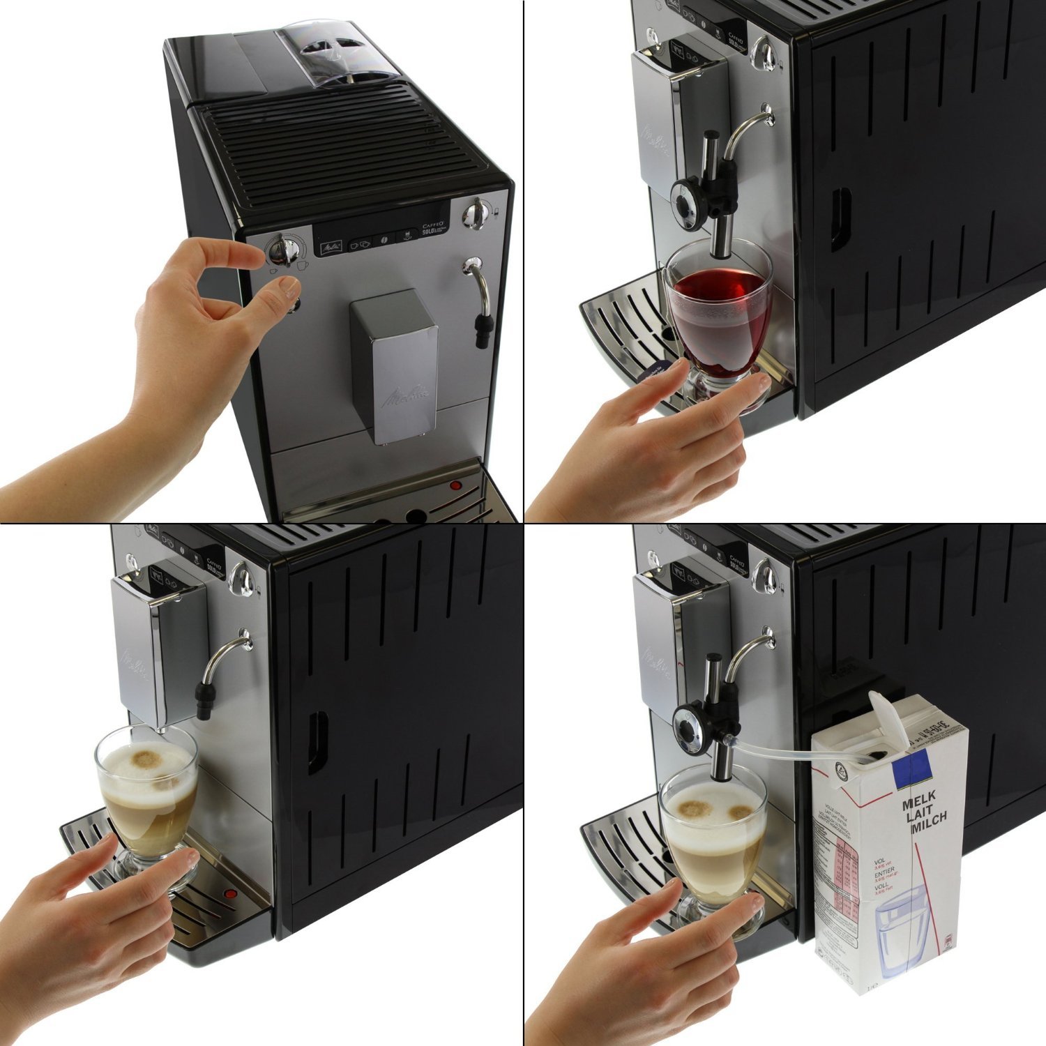 - Der Melitta Caffeo Solo & Perfect Milk E957-103 ist ein schlanker Kaffeevollautomat mit einem hochwertigen Cappuccinatore, der cremigen Milchschaum, warme Milch oder Wasser im Handumdrehen zubereitet.