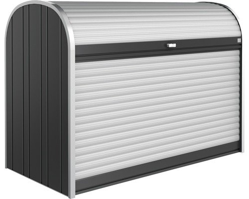 Mit seinem funktionellen Design bietet der Mülltonnenbox Biohort StoreMax 190 Metall maximalen Stauraum auf wenig Platz. Praktisch für den schnellen Zugriff ist das zweigeteilte Öffnungssystem mit leicht gleitendem Rollladen. Vorzüge: beste Qualität: Rollladen und Profile